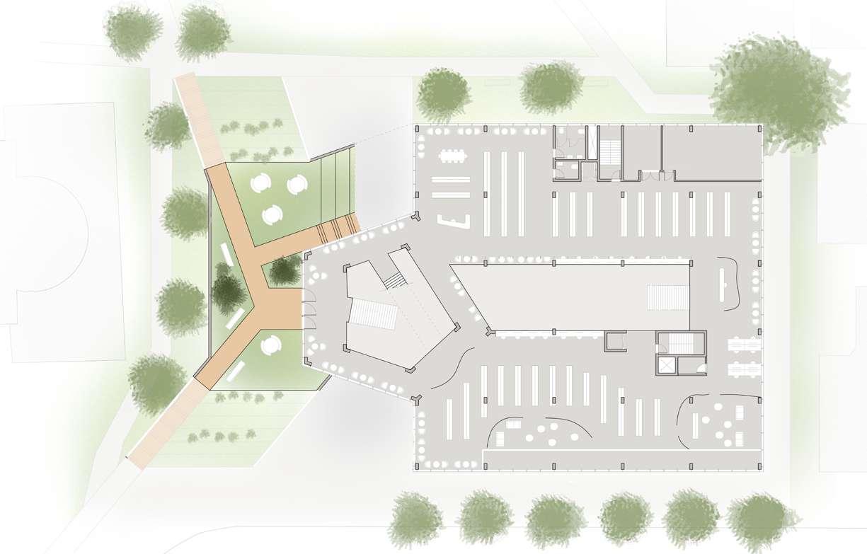 Plan du rez-de-chaussée en canopée Coupe A A -- --A B -- --B