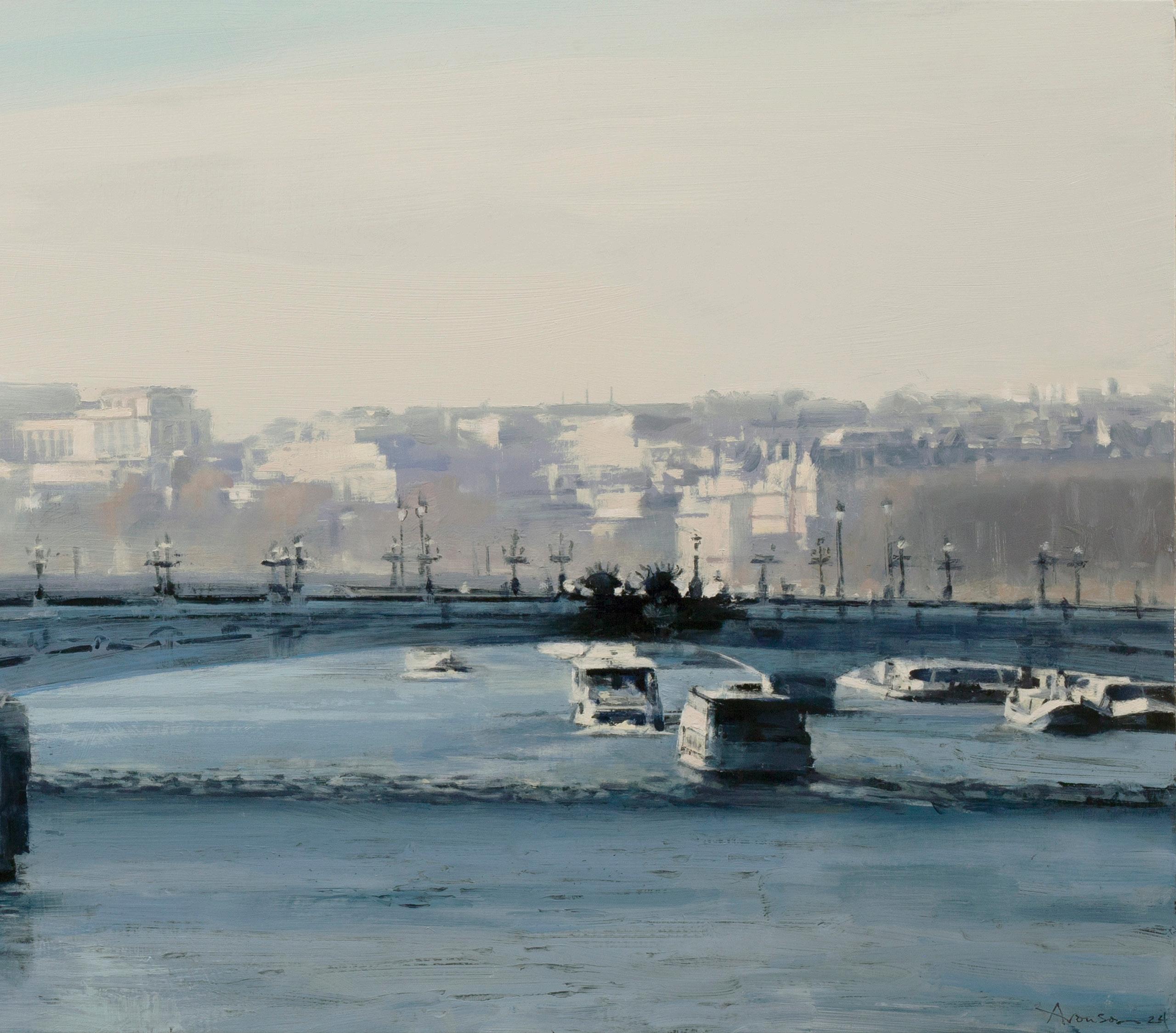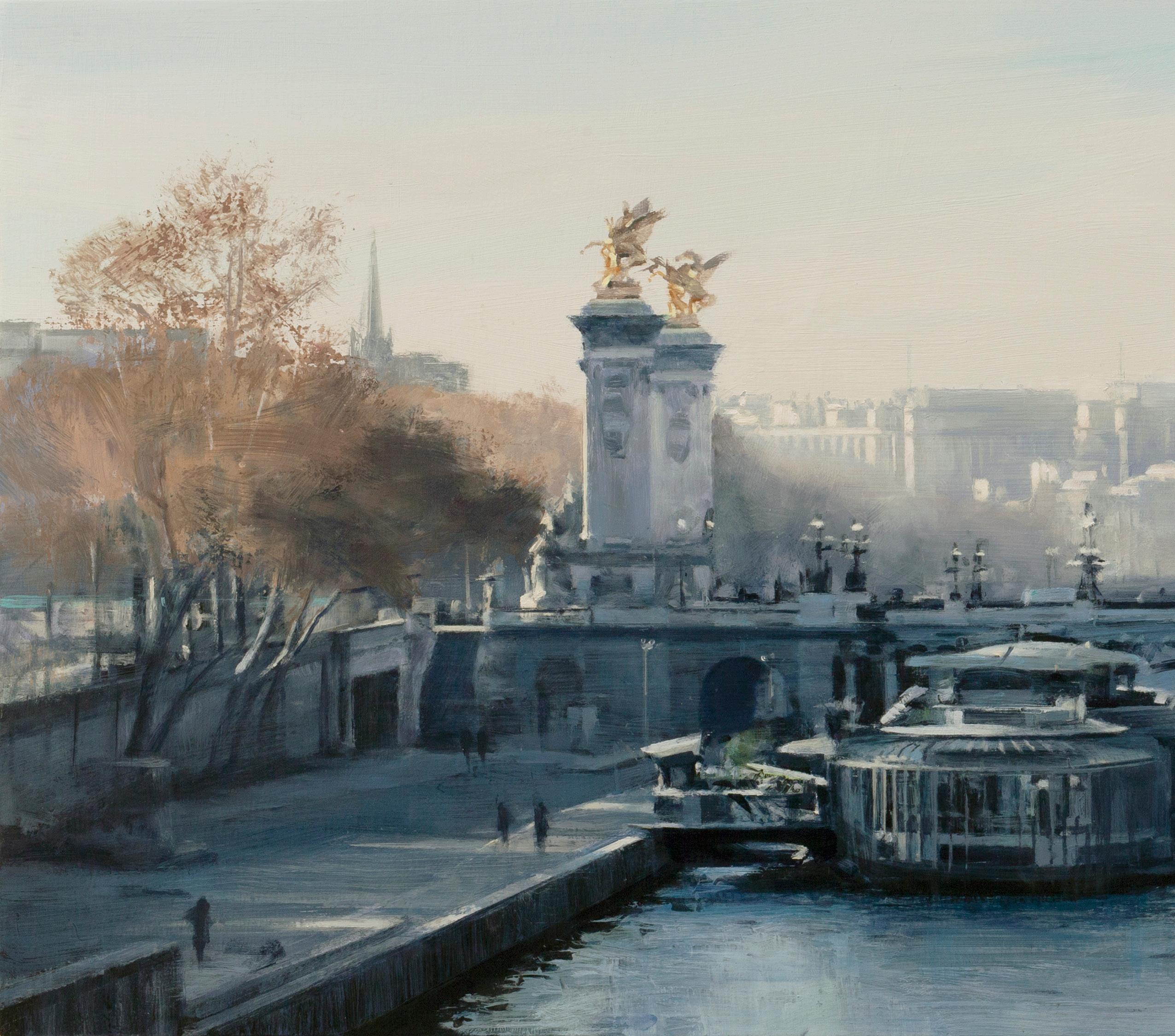 Ben Aronson, Pont Alexandre III, Paris 2024, oil on panel, 23.75" x 54"