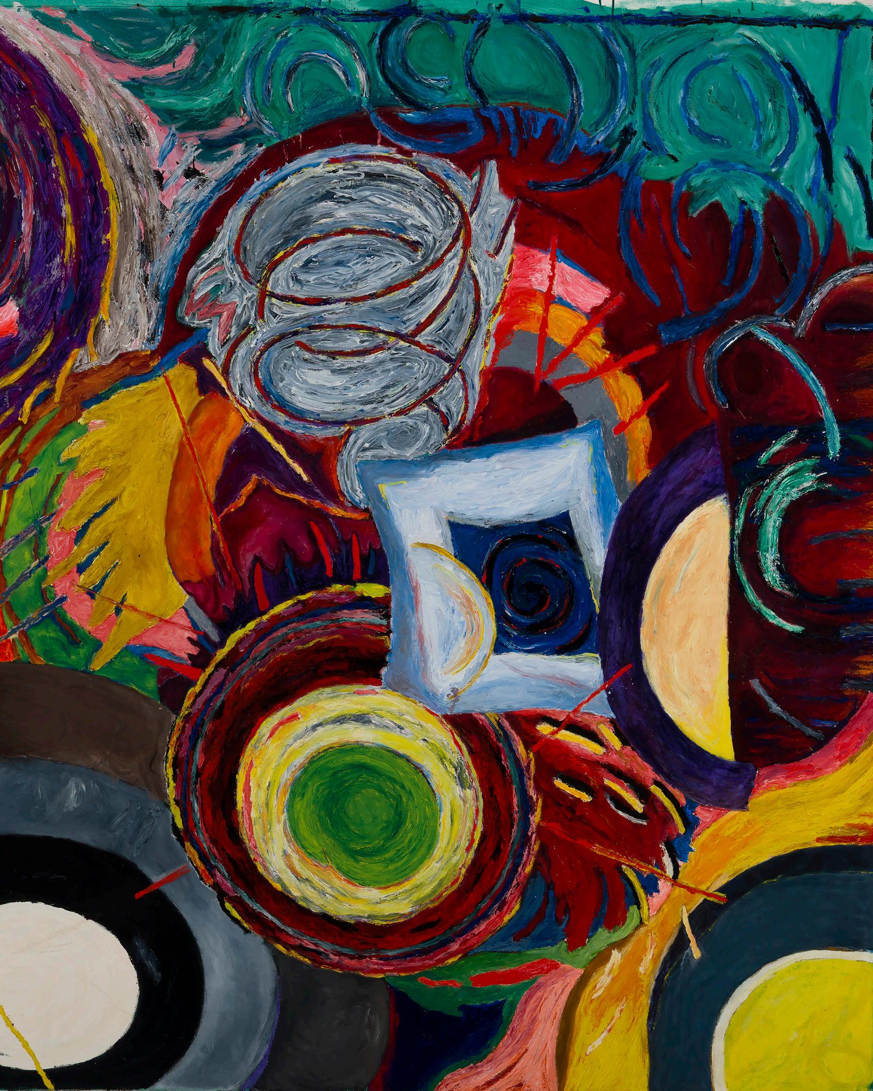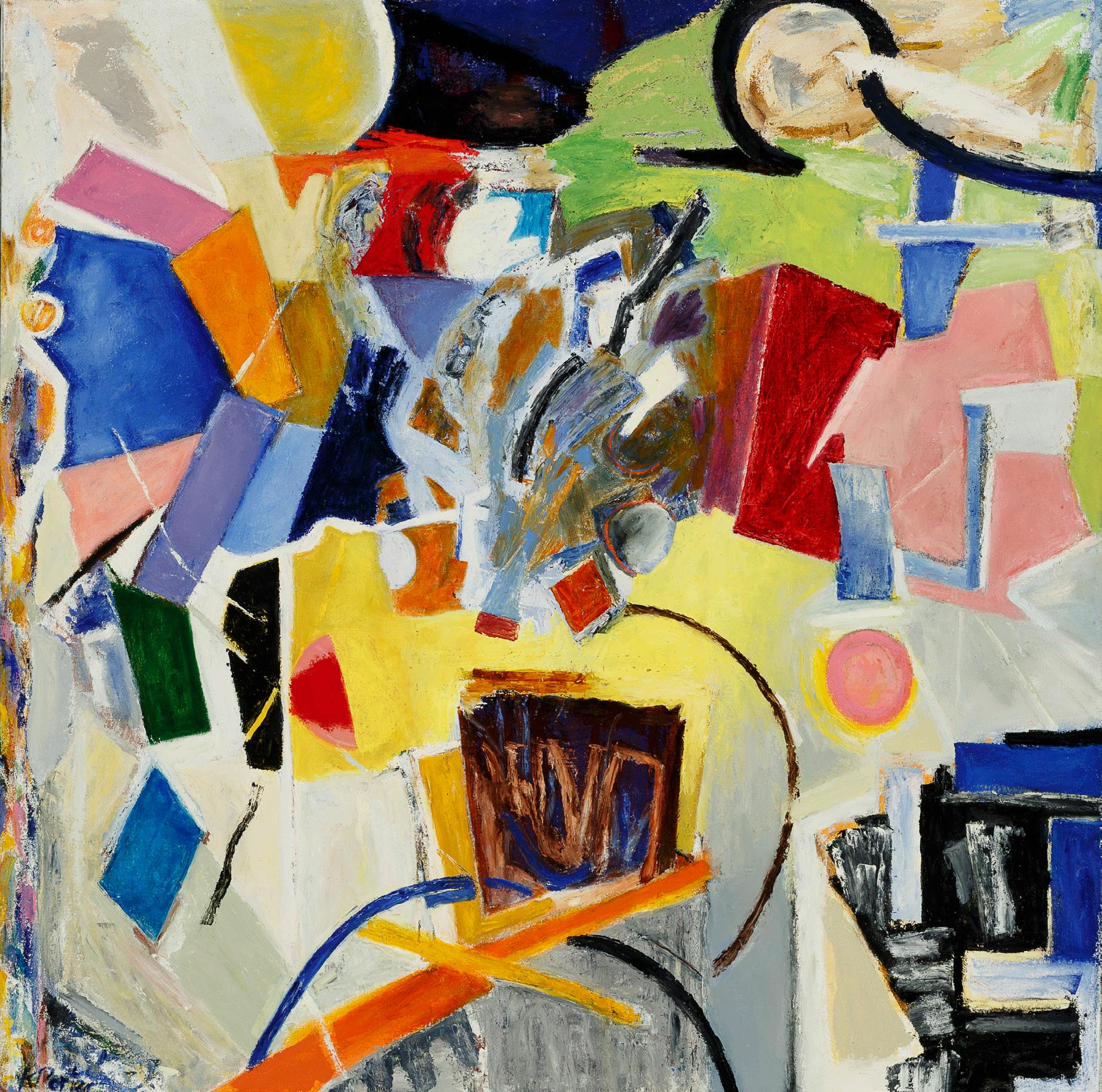 Katherine Porter’s (1941 - 2024) importance lies in the raw, kinetic interplay she forged between geometry and gesture. Over a remarkably distinguished career that spanned nearly six decades and with work in the permanent collections of more than forty important national and international museums, Porter stands as one of the great women of American Abstract Painting, with an enduring resolve that art should inherently maintain an integrative unity consistent with an artist’s aesthetic, social, political, and personal concerns. She built canvases that moved with a sense of wild spontaneity while always underpinned by rigorous compositional control. Her paintings are abundant with circles, triangles, rectangles, squares interposed with lines, spirals, arcs, scaffolds, and matrices, and fields of color, but these formal devices never feel ornamental—they serve as evidence of a painter wrestling with change, conflict and flux. The noted late art historian and Picasso scholar, Lydia Csato Gasman, described Porter’s protean body of work as ‘the vast domain of spontaneity untamed,’ which is ‘tempered, subjected to rational control by a supreme act of self-critical concentration.’ What made her distinctive is that she didn’t merely paint emotion in abstraction—she sought to manifest transformation itself: the clash of order and chaos, the visible and invisible, the psychic and the worldly. In doing so, Porter expanded the possibilities of abstraction for future generations—showing that bold color, disparate shapes, expressive mark-making, and the generative qualities of freedom could speak not just of an artist’s hand, but of the broader forces of change that shape our lives.
