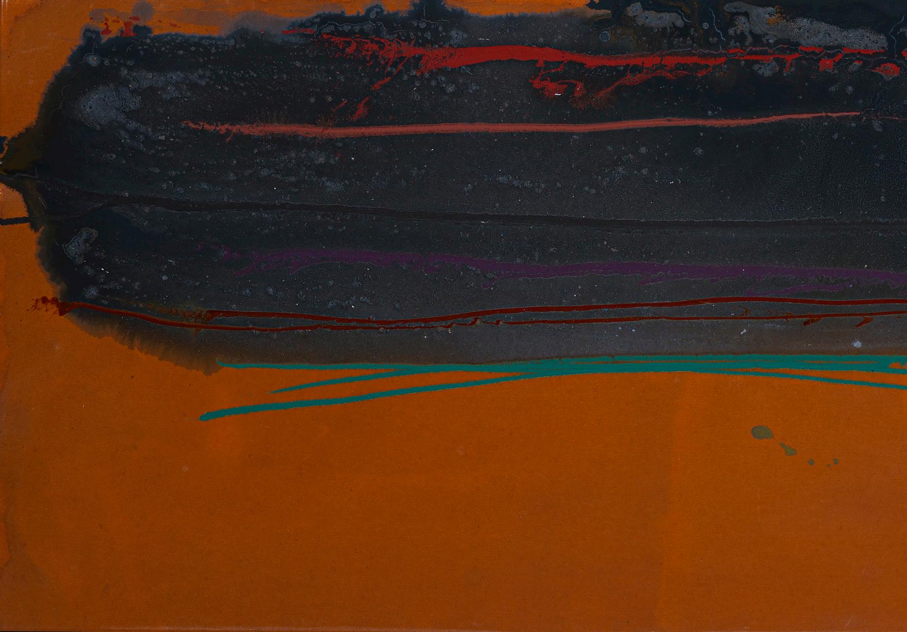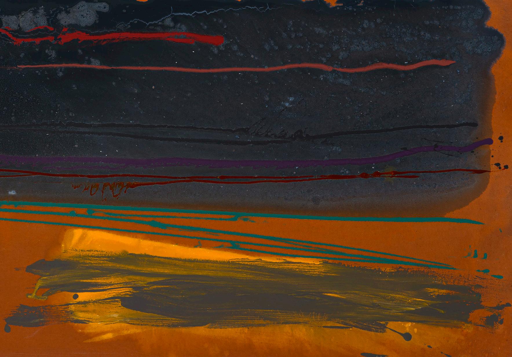 Dan Christensen, Creek Treaty 1982, acrylic on canvas, 28.5” x 81.5”