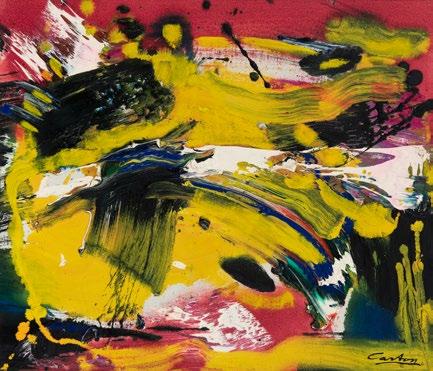 Norman Carton (1908-1980), distinguished himself in the mid-20th-century American art scene through a forceful, deeply emotive approach to abstraction that placed color and gesture at the center of his visual language. Having fled the Russian pogroms as a child and settled in Philadelphia to study at the Pennsylvania Academy of Fine Art, Carton used a 1934 fellowship to travel to Europe, where he was exposed to the work of masters like Matisse, Picasso, and Kandinsky. Although he began his career as an illustrator, he emerged as a superb colorist whose canvases wield rich, pulsating palettes and dynamic brushwork to evoke inner worlds of tension and release. Carton is particularly significant because his work bridges the modernist lineage—from Post-Impressionism, Fauvism, Surrealism, and Cubism—to the gestural dynamism of the New York School of Abstract Expressionism, while retaining a personal signature built around luminous color fields that seem nearly spatial in effect. Carton described his practice as a “dialectical process” and the realization of “organic unity between color and plastic form,” reflecting a philosophical ambition to offer viewers the space for “free association” and a kind of contemplative immersion, often evoking the rhythmic complexity of improvisational jazz. This reflects not only his technical mastery—grinding his own pigments and exploring the materiality of paint—but also his commitment to re-frame the mid-century abstract movement by foregrounding color itself as subject and space. In addition to his many solo exhibitions, Carton’s legacy includes two decades on the faculty of the New School for Social Research, his advocacy for artists’ rights, and his work in public collections such as the Whitney Museum of American Art and the National Gallery of Art, solidifying his place as a singular interpreter of color’s emotional and spatial capacities.