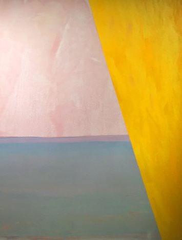 Katherine Porter, Sunset in Maine with Yellow Frame 2023, oil on canvas 48” x 42.25”