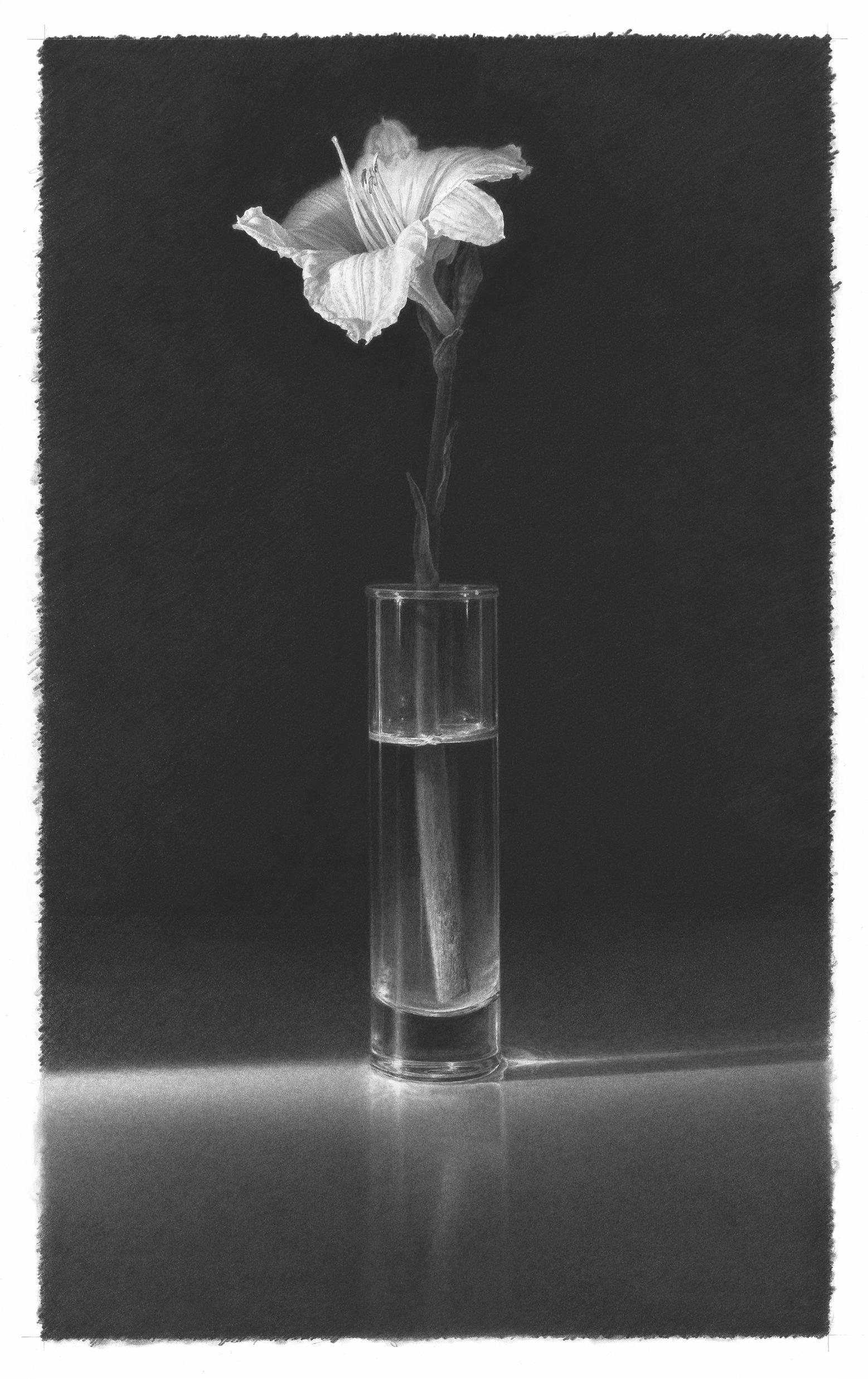 Skip Steinworth, Single White Daylily 2020, graphite on board, 21.5" x 13"