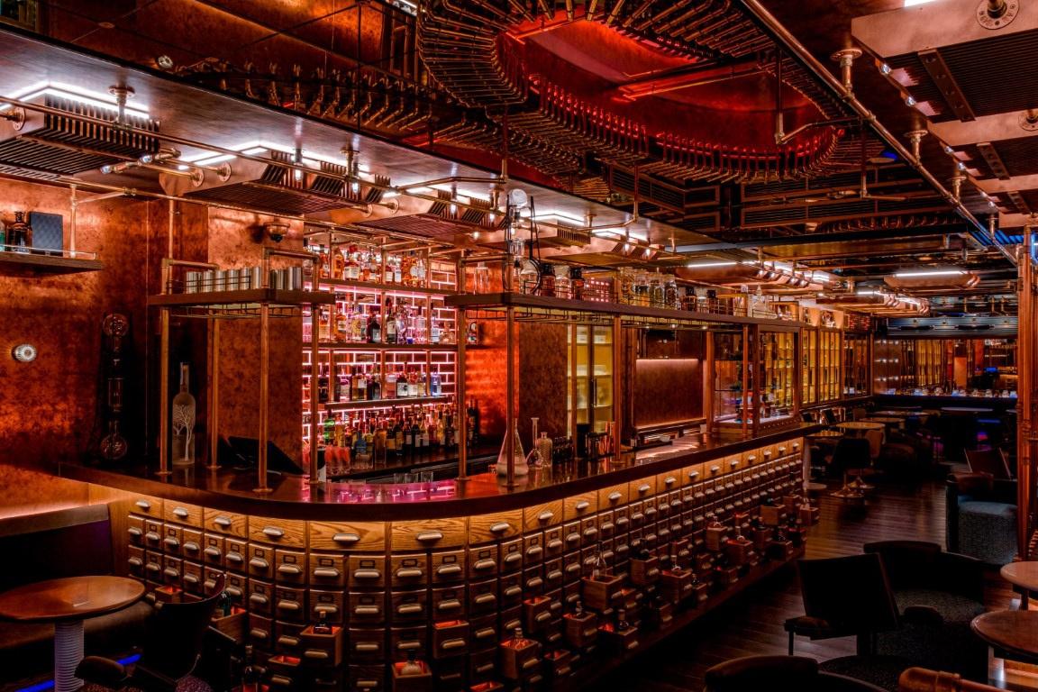 Since its inception last year, The Megaro's Hokus Pokus alchemy bar has become a social media sensation. The alchemy bar has become a social media sensation. The space has acquired a cult following in recent months - and space has acquired a cult following in recent months - and for good reason. It's a unique space covered with for good reason. It's a unique space covered with shimmering copper, aged brass, mercury glass, white shimmering copper, aged brass, mercury glass, white marble and vintage oak, punctuated by vibrant flashes of marble and vintage oak, punctuated by vibrant flashes of petrol blue and deep purple. The bar produces and serves petrol blue and deep purple. The bar produces and serves over 30 cocktails from an in-house lab, presented as over 30 cocktails from an in-house lab, presented as potions and prescriptions. potions and prescriptions.