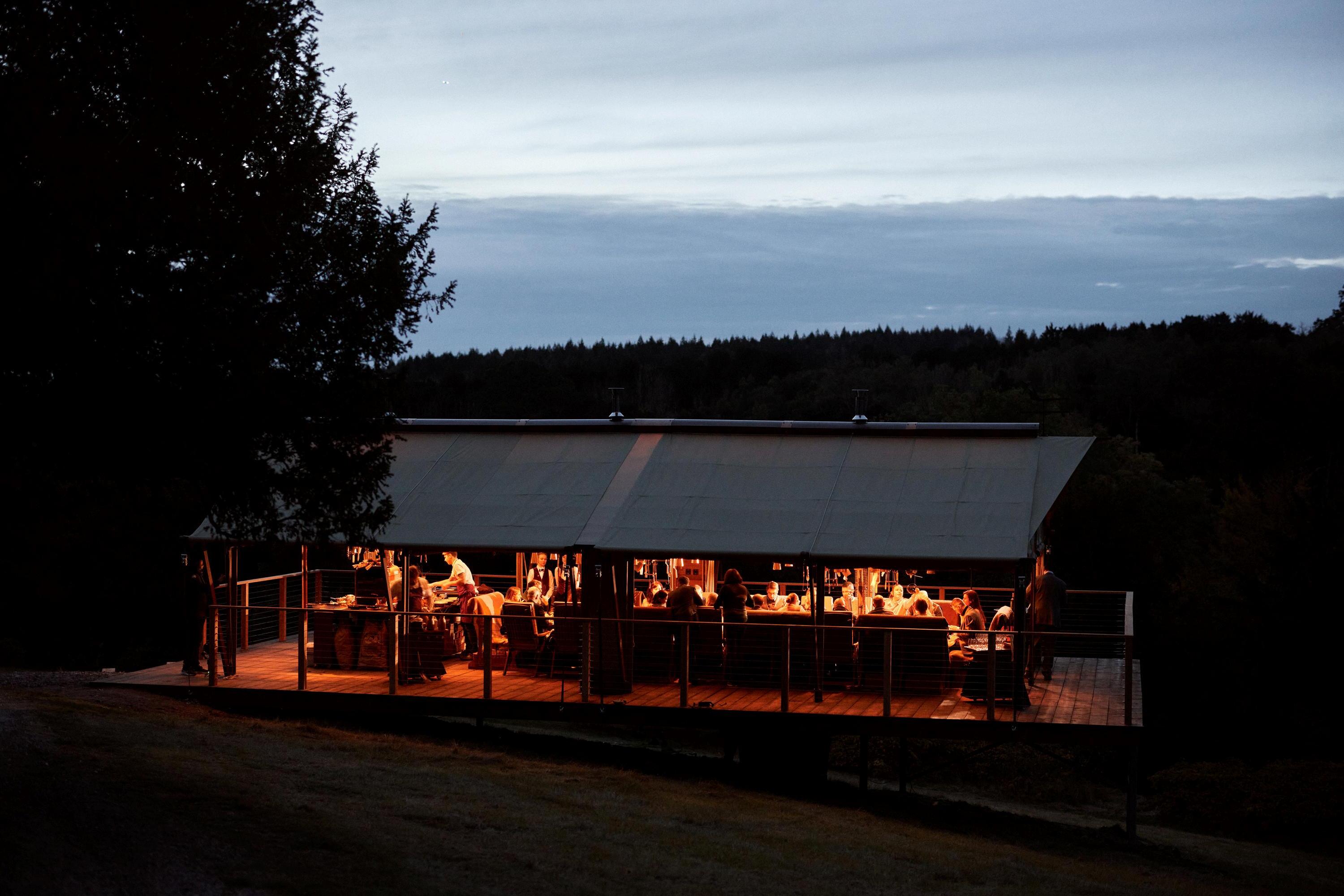 The venue is designed to withstand all weather types, including torrential downpours and harsh winds. In fact, it may even elevate the experience to hear the storm howling as you sit by a crackling fire.