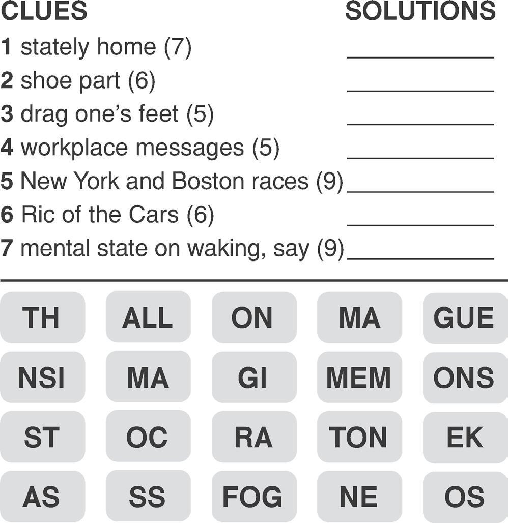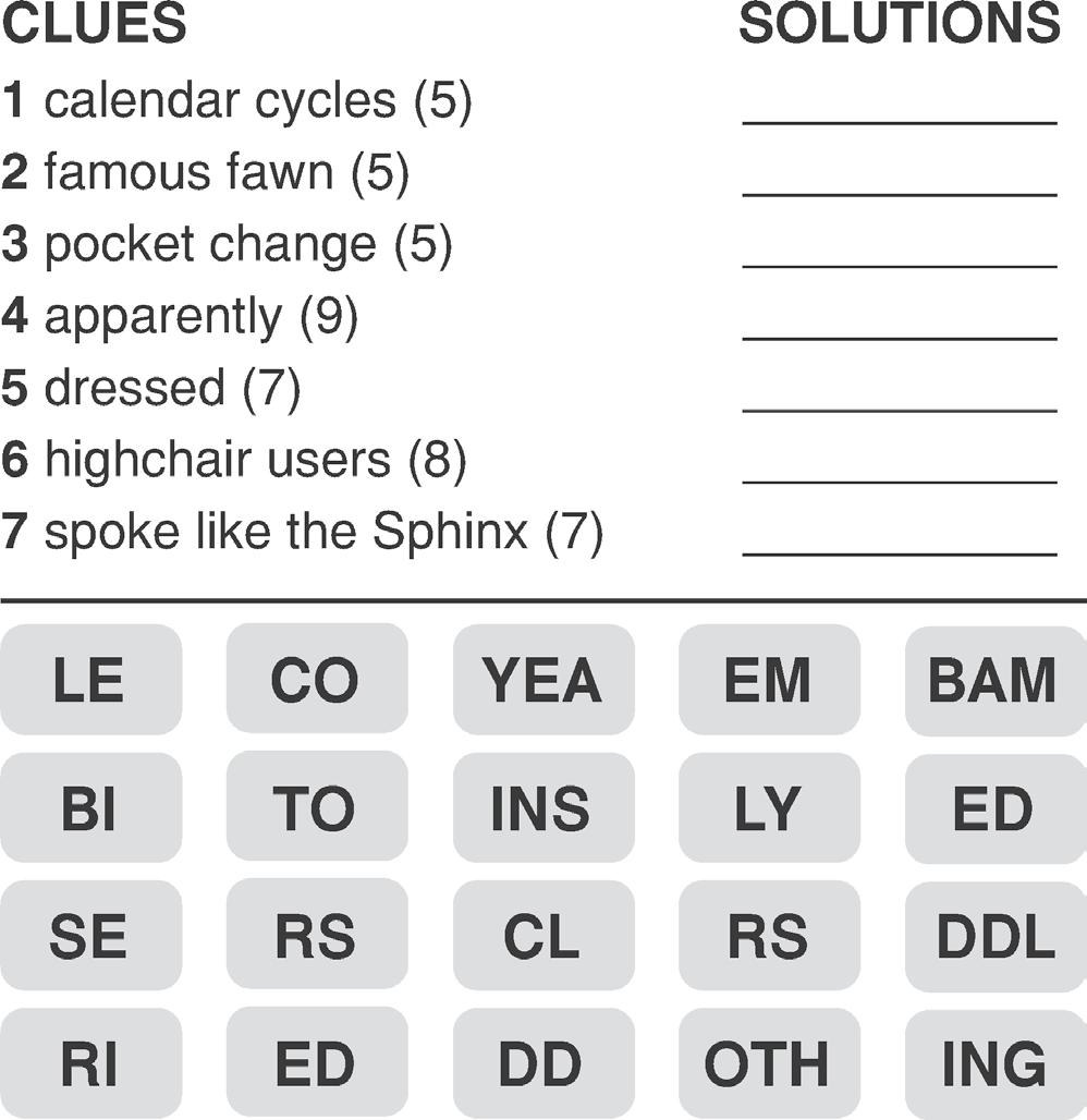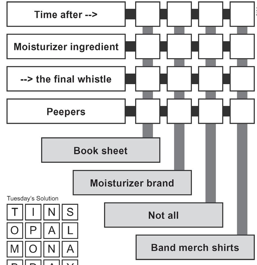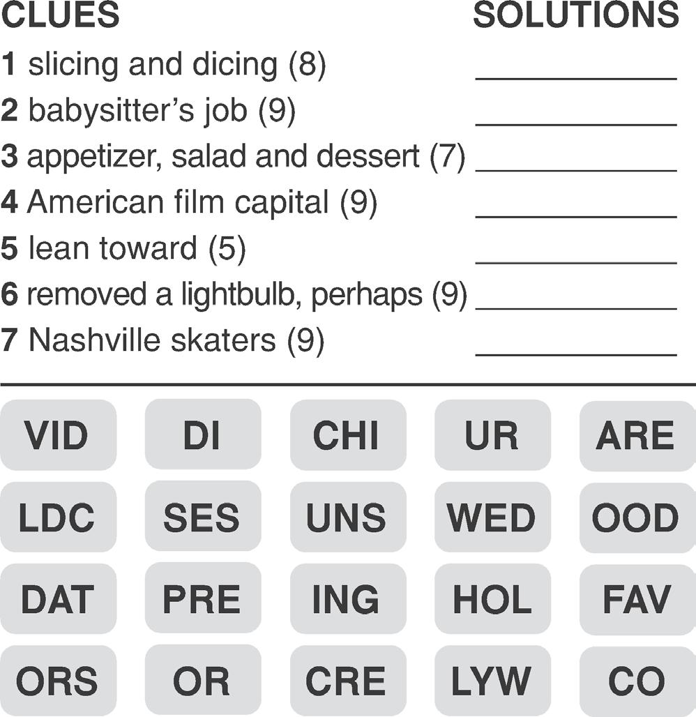 Players use crossword-style clues to ll in two-word phrases. But here’s the twist: the second word of each phrase is the rst word in the phrase that follows.
