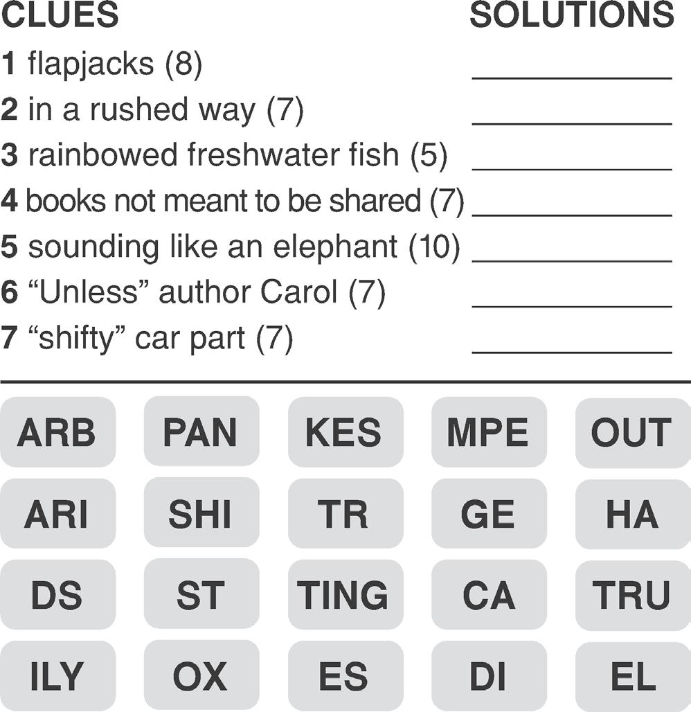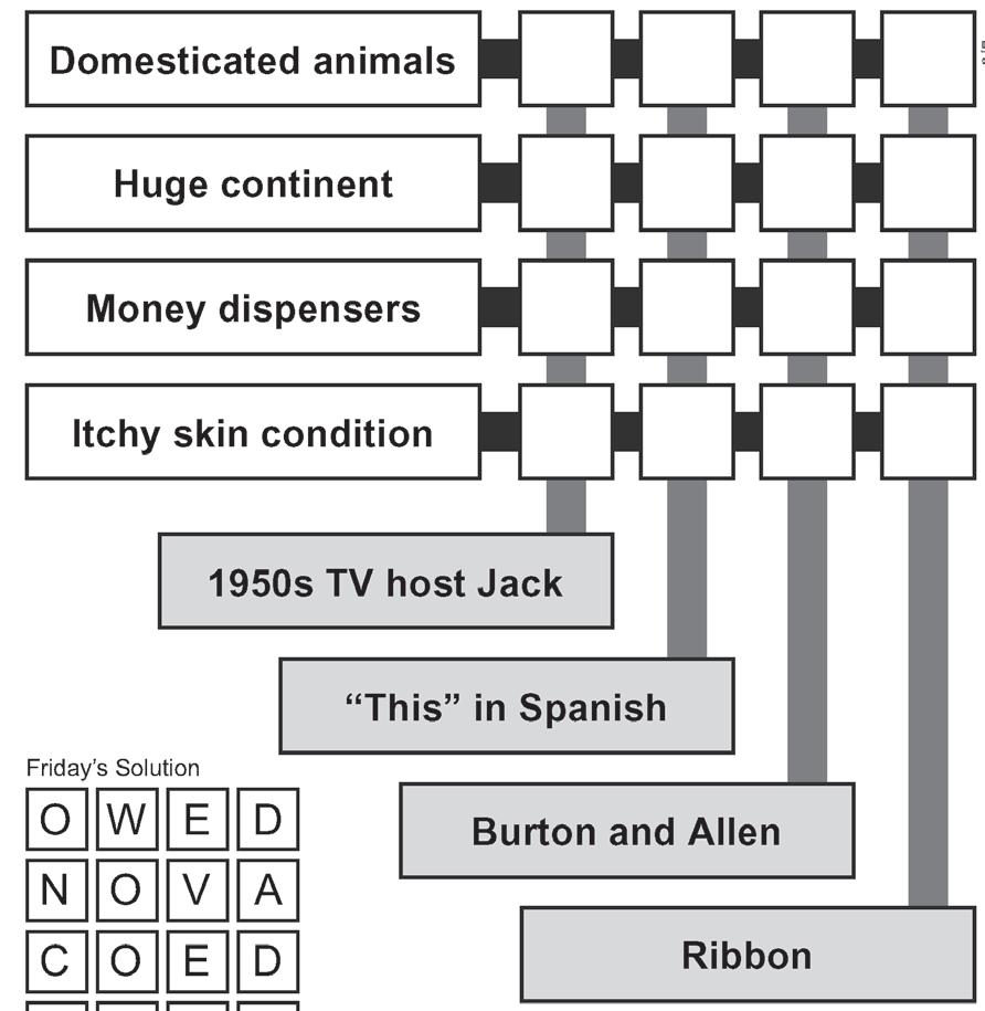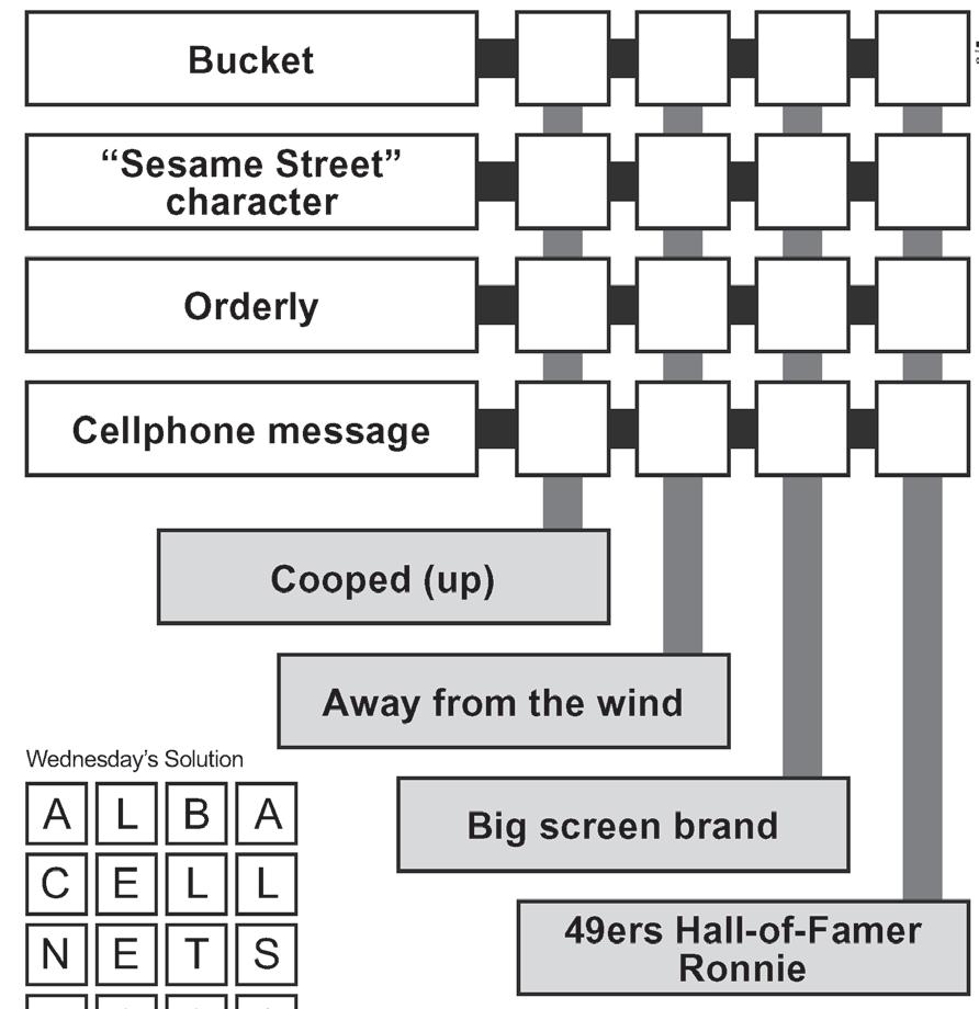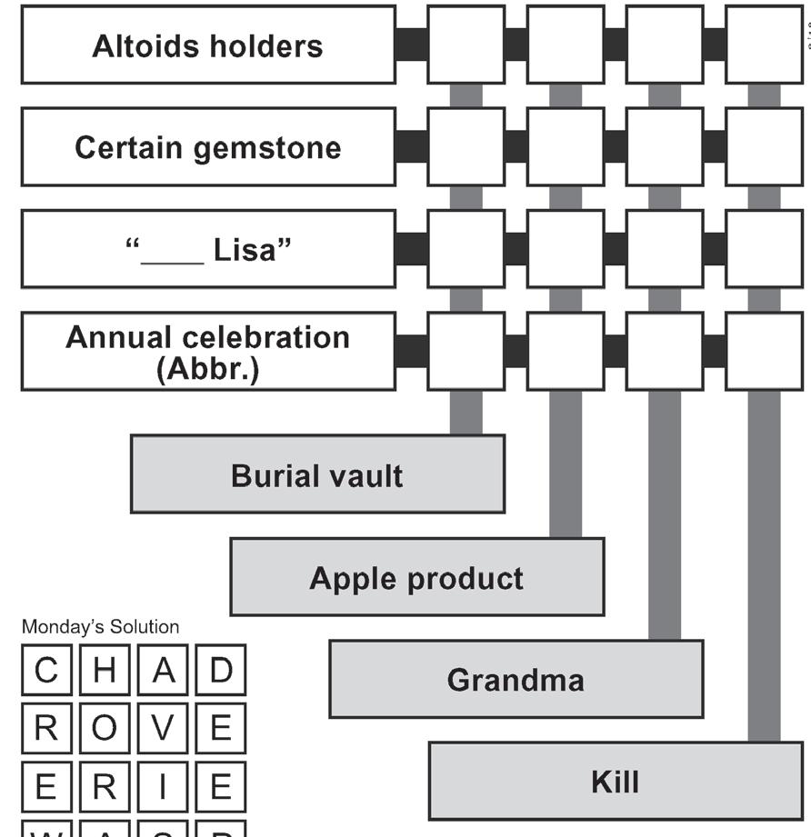 Players use crossword-style clues to ll in two-word phrases. But here’s the twist: the second word of each phrase is the rst word in the phrase that follows.