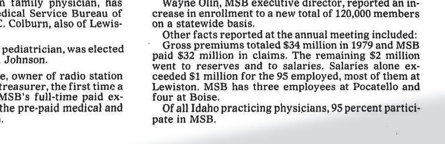 Here is some vintage Lewiston Tribune reporting about Medical Service Bureau, the original name of Regence BlueShield, during the initial years of its founding in 1946.
