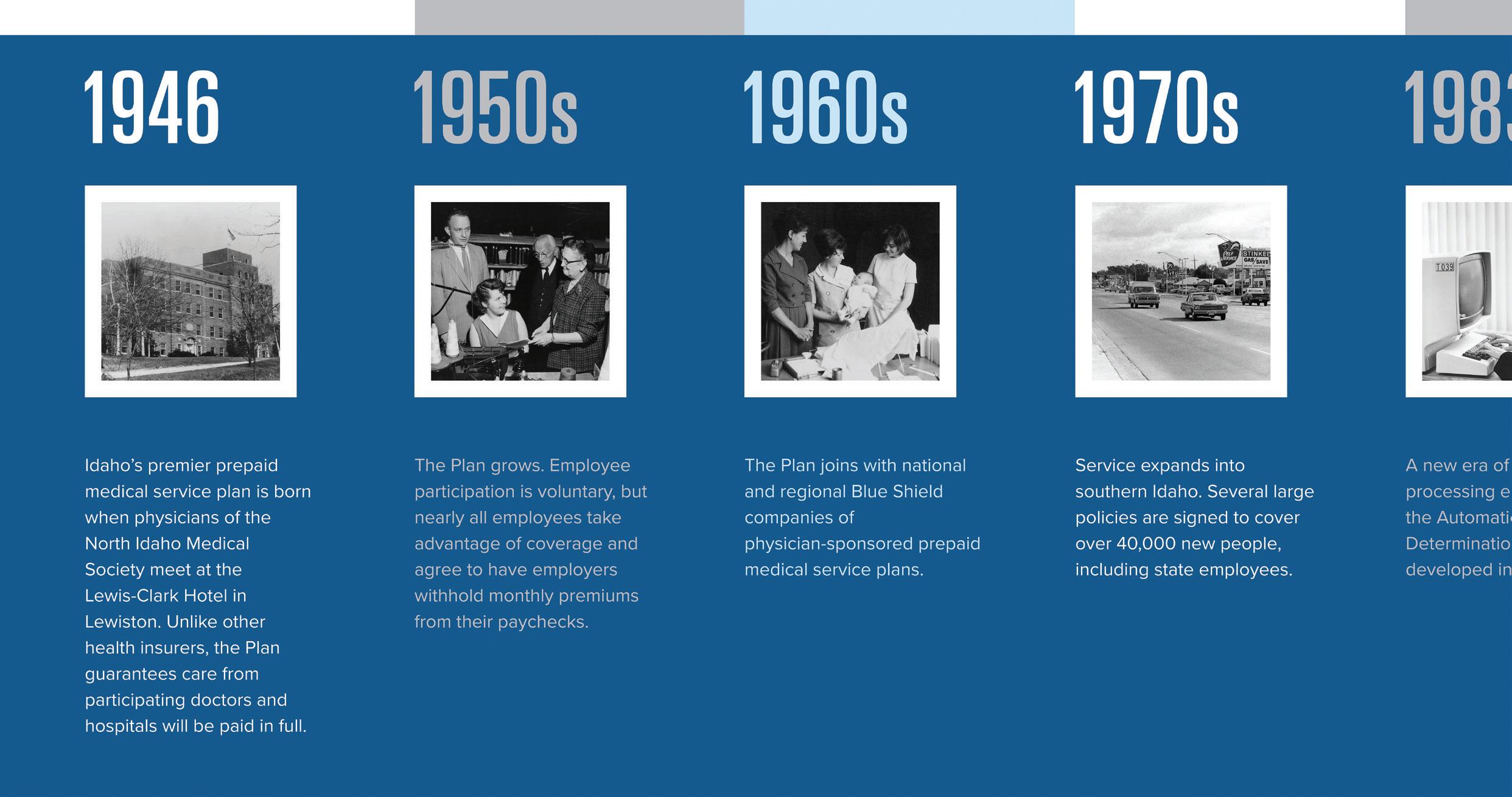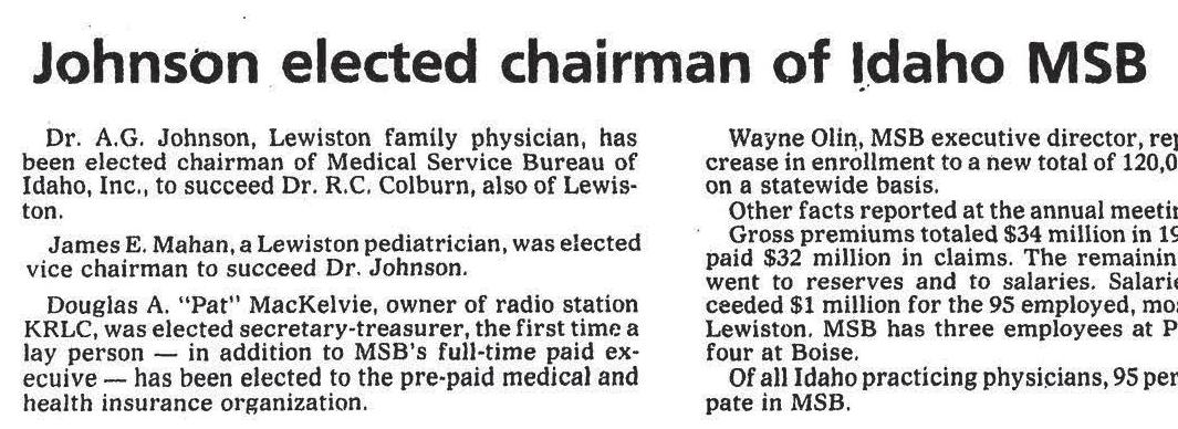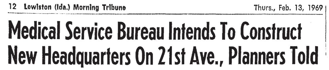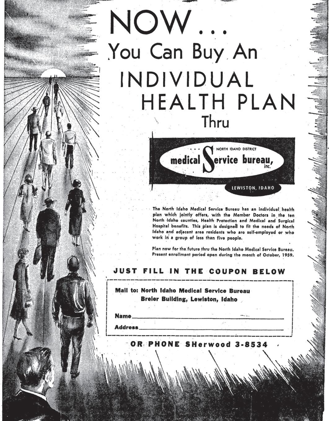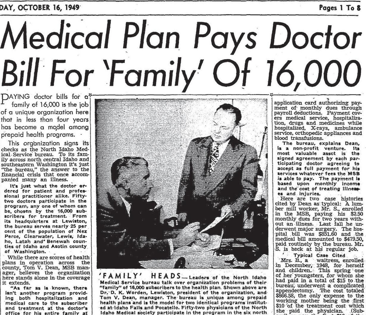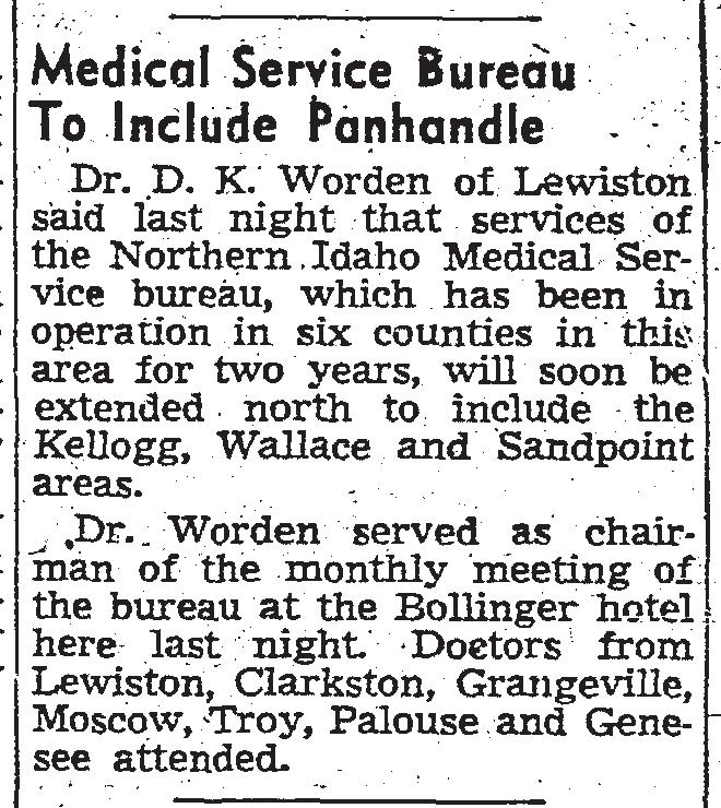 Medical Service Bureau became North Idaho Medical Service Bureau two years later, expanding in 1948 to cover a territory north of the Salmon River to the Canadian border. That was enabled by