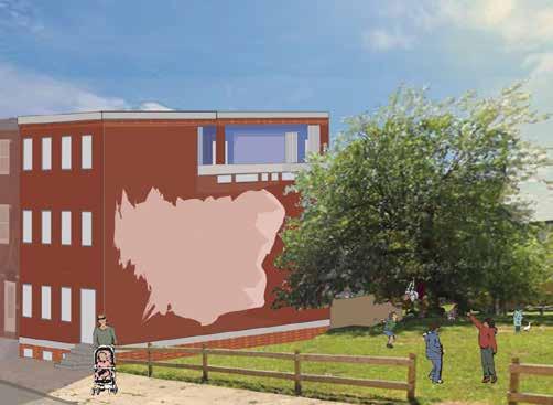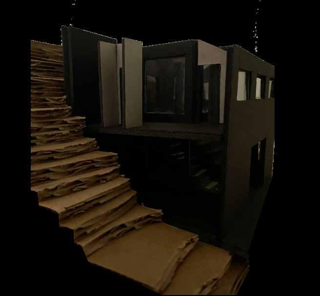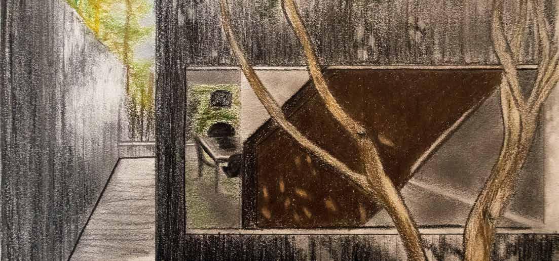 Adaptive Reuse of this historical home’s ruins becomes the beginning of the journey. The winding ramp acts as the last thread holding these ruins together. It leads up to a roof deck garden which incorporates the ivy plant already taking over this structure or down to the beginning of the Pathway Towards Peace.