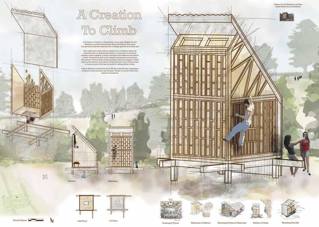 This project began with a case study of an existing cabin with the intention of relocating it to a Philadelphia park. After understanding the narrative of the cabin, an exploration of vairous board organizations led to the creation of a final composition.