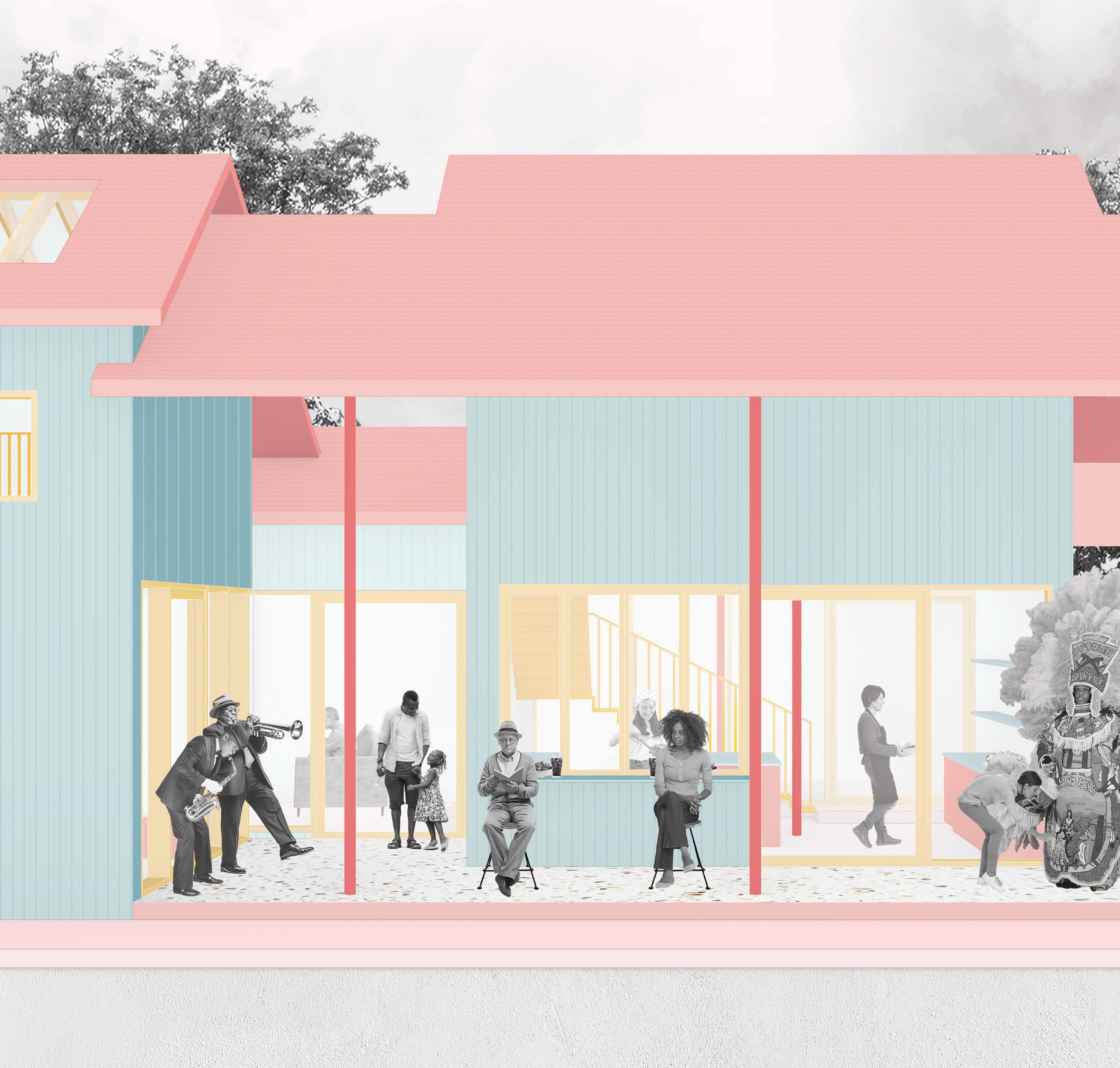 In response, recent efforts have emerged to preserve Treme’s cultural legacy and protect it from further erosion. Central to these efforts is the proposal of a new type of commons—a communal space that prioritizes the safeguarding of Treme’s cultural fabric. This commons would be situated in an area that historically served as a gathering place but now lies dormant, like a pleat in the urban landscape. Rather than contributing to displacement, this space aims to reinforce community ties and celebrate Treme’s vibrant traditions. It represents not just a physical location, but a commitment to honoring, nurturing, and sharing the practices that have shaped this historic neighborhood for generations.