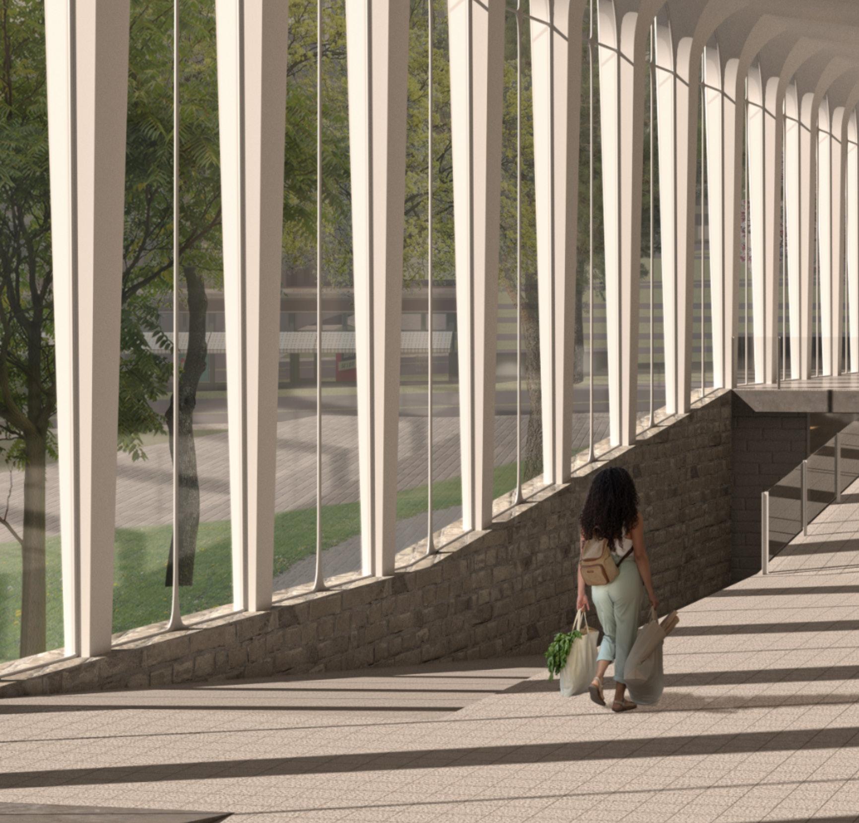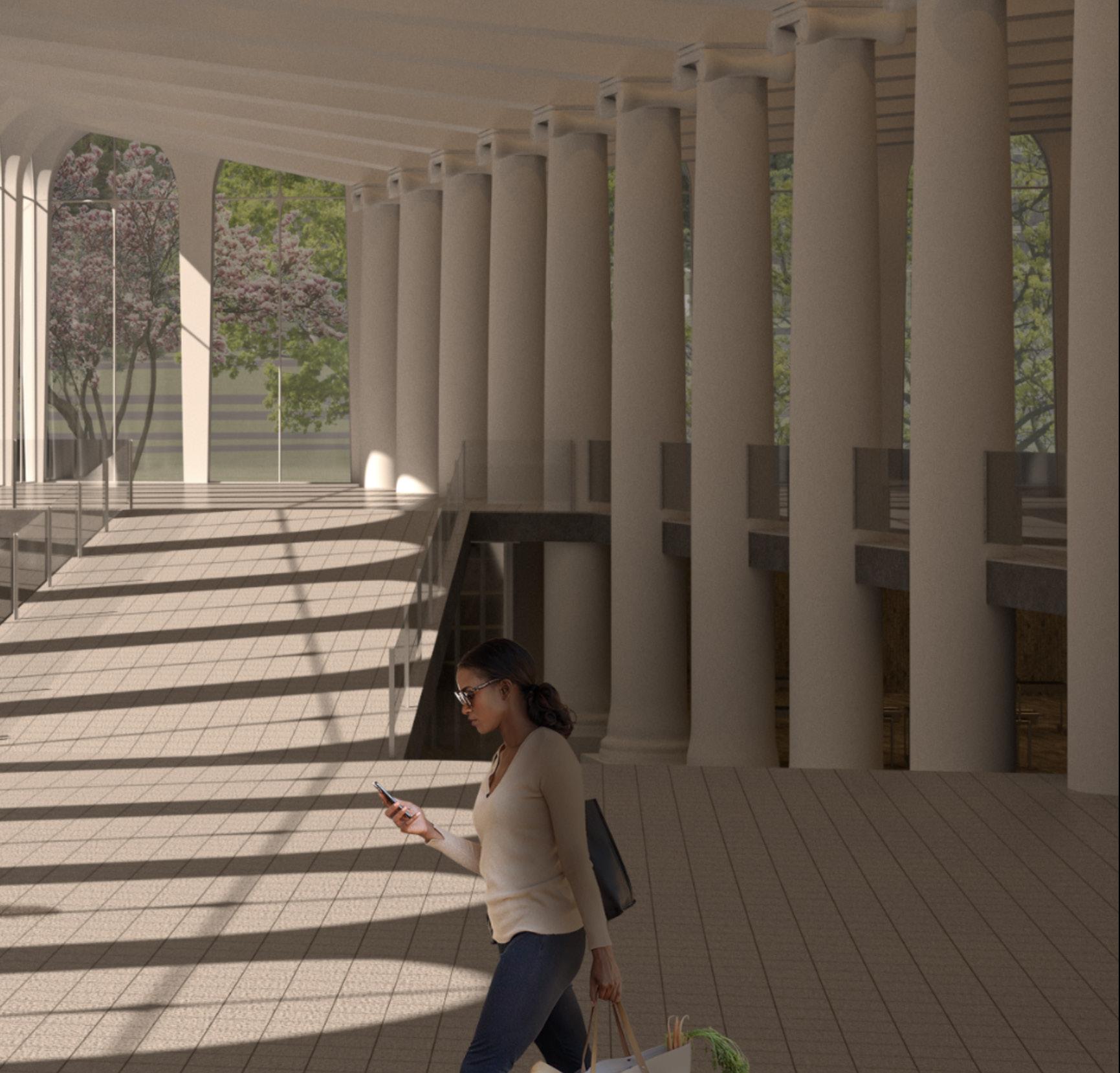 A column spacing study revealed that reducing the distance between each column creates the visual impression of a wall.