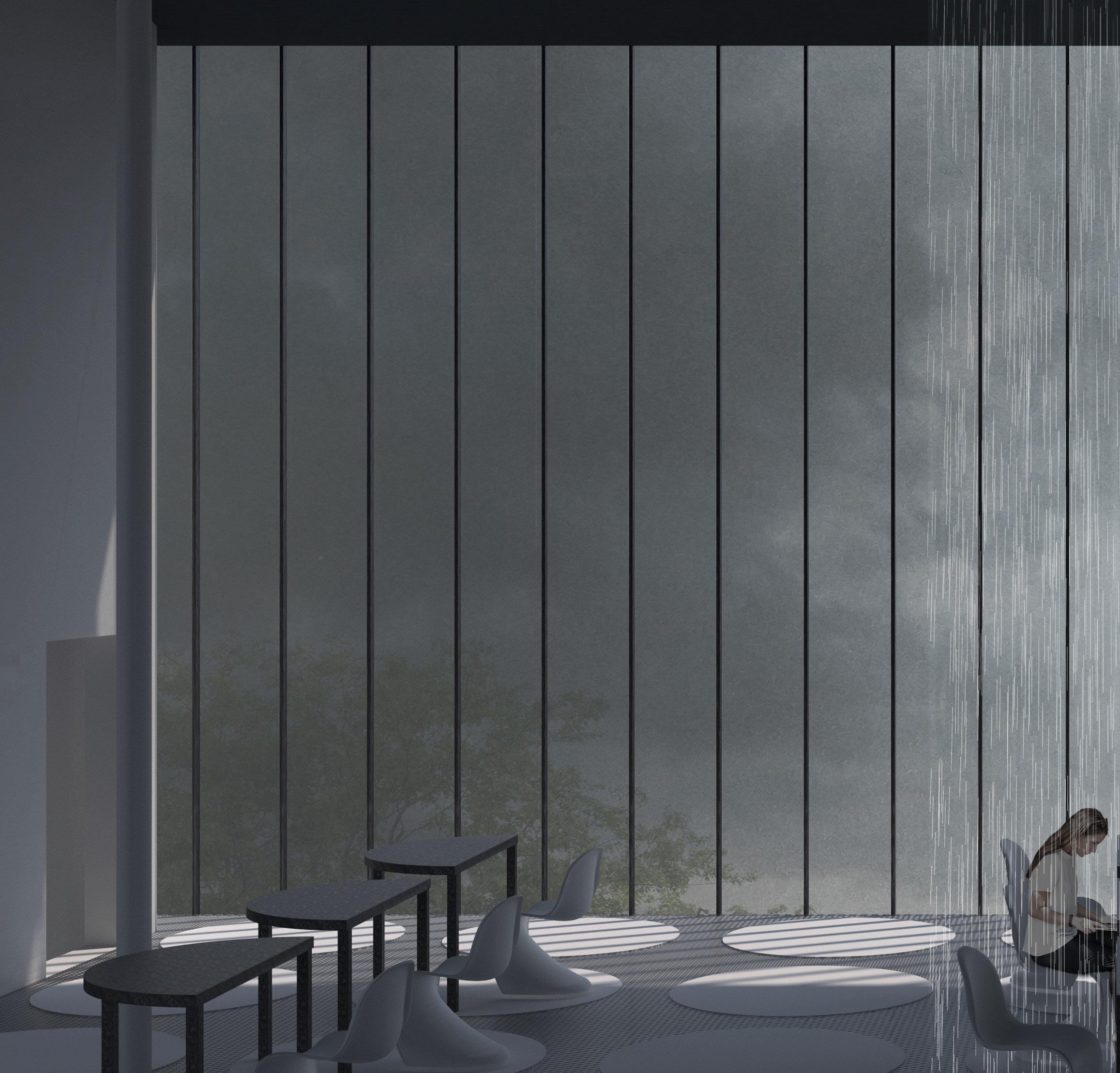 The core of the design revolves around a dynamic ceiling water wall system, enabling versatile workspaces for various tasks and team collaborations. This departure from static layouts empowers occupants to tailor their workspace, creating a more personalized and efficient environment. The integrated drain system ensures cleanliness and sustainability by efficiently recycling water.
