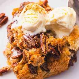 Preheat the oven to 350°F and prepare a 9×13 dish. Whisk together the flour, baking powder, salt, granulated sugar, and pumpkin pie spice and set it aside. In a separate bowl, combine the pumpkin puree, evaporated milk, melted butter, and vanilla extract. Add the dry ingredients to the pumpkin mixture and stir until well combined. In another bowl, mix the brown sugar and pecans and spread evenly over the top of the batter. Pour the boiling water evenly over the top and bake for 50 minutes or until the middle is set. Cool slightly before serving with additional pecans and optional vanilla ice cream.