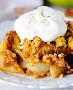 Preheat the oven to 350°F and prepare a 9×13 dish. Combine the apples, granulated sugar, lemon juice, cinnamon, salt, and cornstarch and toss until the apples are well coated. In another bowl, mix the flour, oats, brown sugar, baking powder, and baking soda. Cut in the butter until the mixture resembles coarse crumbs. Stir in the milk until just combined. Spread the apple mixture evenly into the baking dish and drop spoonfuls of the topping over the apples. Bake for 40-45 minutes or until the topping is golden brown and the apples are bubbling. Cool slightly before serving with optional vanilla ice cream.