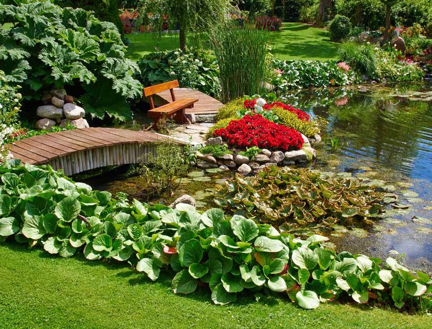 water-loving plants and some fish making their home in the pond. “We’ve added numerous fish as they met various demises: herons and cranes and not getting the chemicals right,” Becky said. “Last fall we didn’t cover the pond with a net and most of them were eaten.” They have added goldfish to replace what was lost.