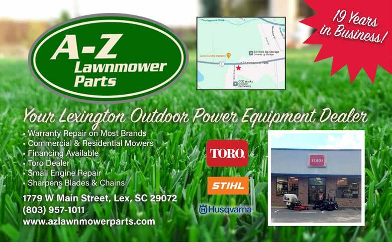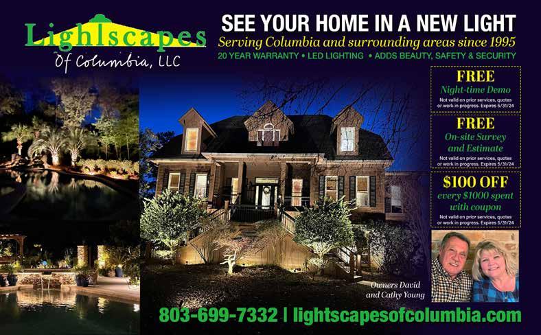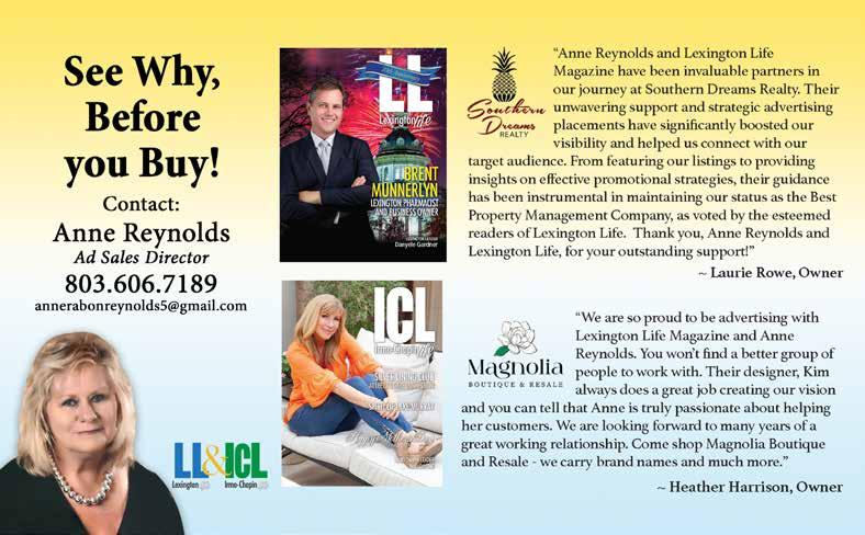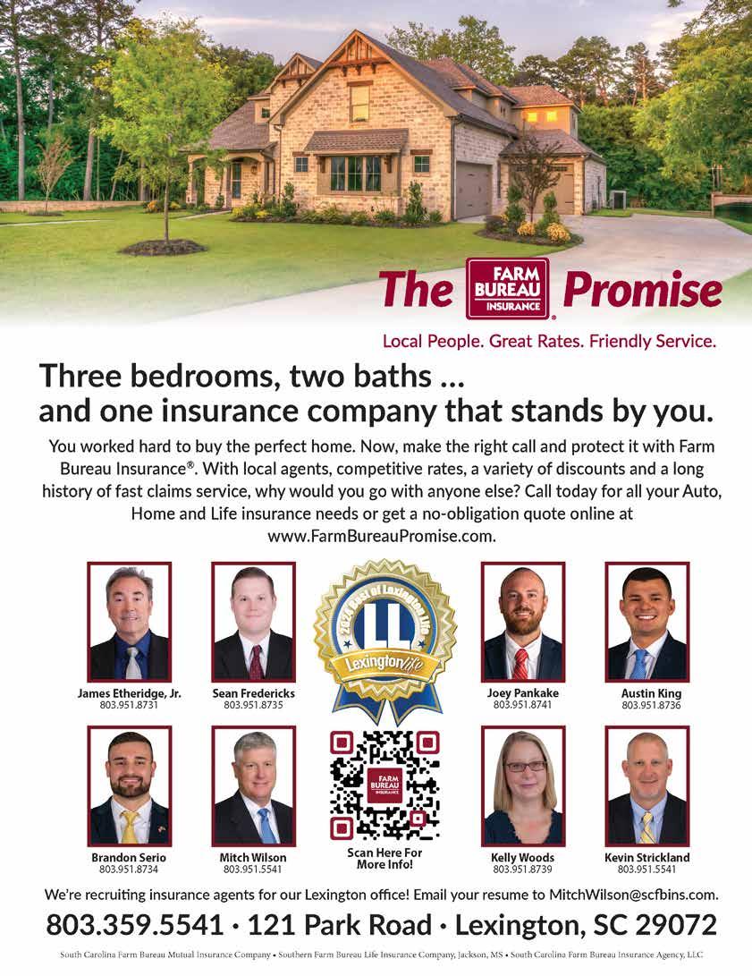 6 | LEXINGTONLIFE | June 2024 lexingtonlife.com C a r r i a g e E s t a t e s CONTACT US 803-884-9799 www.pulte.com/carriageestates OUR PROPERTY FEATURES SPACIOUS KITCHENS FUTURE POOL & PAVILION OPEN FLOORPLANS Spacious living areas, bedrooms, and bathrooms High-end upgrades and functional home features. 114 Schneider Ln, Lexington, SC 29072 Bedrooms Bathrooms Garage Spaces 4-6 2-5 2 STARTING IN THE HIGH $300‘S AT Woodward High quality construction and 10-year warranty. LEXINGTON, SC