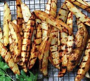 Cut potatoes into wedges and place in a baking dish or large bowl and drizzle with oil. Combine the spices and sprinkle about half over the potatoes. Toss to coat and add more oil and spices. Coat the grates with canola or vegetable oil and place potato wedges directly on the grates. Cook 12-15 minutes, turning every 4-5 minutes, and cook until fork tender. Cooking time will vary depending on the thickness of the potatoes. Serve immediately with parsley and dipping sauce, if desired.
