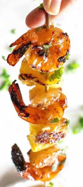 In a large bowl or a large ziplock bag, mix the soy sauce, olive oil, butter, garlic, ginger, and lemon juice. Add the shrimp and marinate for at least 5 minutes, and up to 30 minutes. When you are ready to grill, remove the shrimp and season with salt and pepper. Add to skewers alternating between the shrimp, pineapple, and bell peppers. Grill for 2-3 minutes on each side.