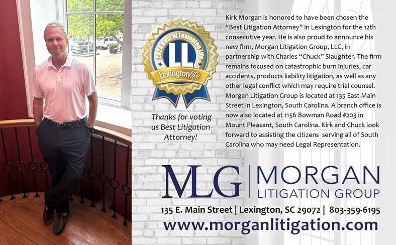 lexingtonlife.com May 2024 | LEXINGTON LIFE | 7 FEATURES Brent Munnerlyn .................................... 14 Southeastern Esthetics Institute’s Child Care Center 22 Spirit of Lake Murray ............................. 25 Lexington County Library 29 Brain Cancer Awareness 33 Costless Outlet 37 Punt, Pass & Kick 39 Mother’s Day Gifts .................................. 41 COLUMNS Faith Matters 11 Tom Polland ......................................... 19 David Clark 47 DEPARTMENTS From the Publisher ............................... 7 Calendar of Events 8 Lexington Leader ................................. 12 Spice of Life ......................................... 44 inside IRMOCHAPINLIFE.COM Follow us on Facebook follow us on facebook 803.356.6500 lexingtonlife.com FROM THEpublisher 25