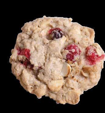 Preheat the oven to 375° F. Cream butter and sugar until light and fluffy. Add eggs, one at a time, beating well after each addition, then beat in the vanilla. Combine the flour, baking powder, salt, and baking soda; add to the creamed mixture. Stir in the oats, raisins, cranberries, and orange zest. Stir in baking chips. Drop rounded teaspoonfuls 2 in. apart onto a prepared baking sheet. Bake for 10-12 minutes, until the edges are lightly browned. n