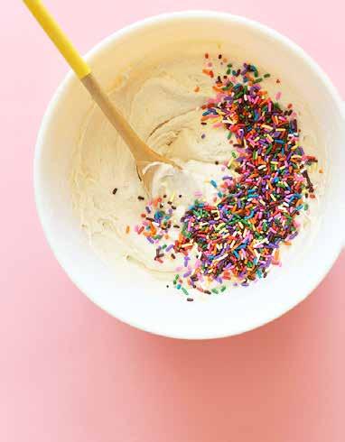 Spritz or dunk your apple slices with lemon water. Dry them gently with a towel and then spread on the frosting. Once they’re covered with frosting on the top, sprinkle with sprinkles and chocolate chips. n