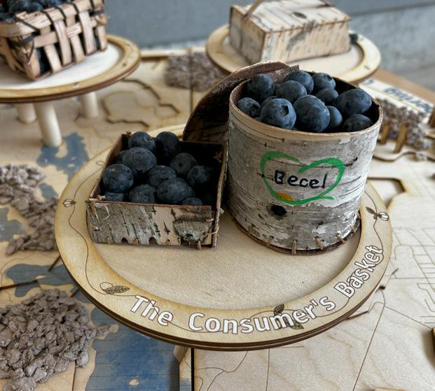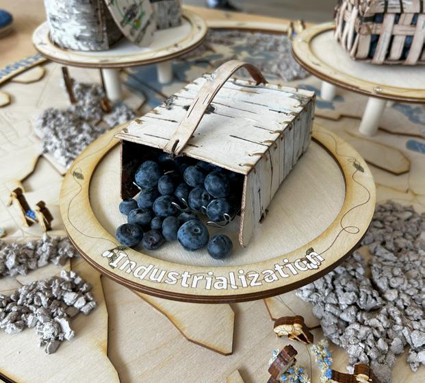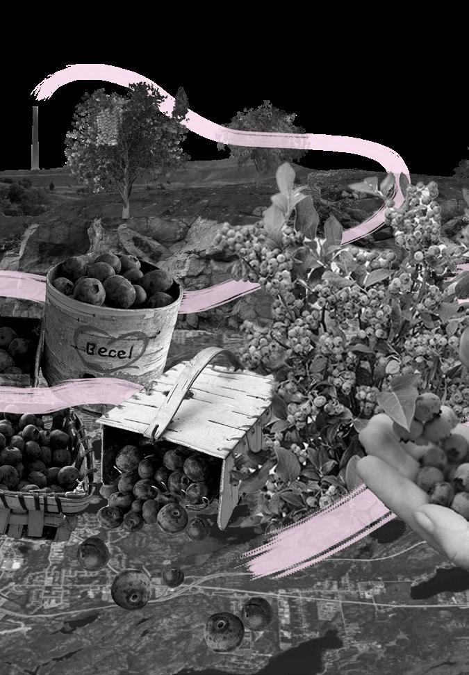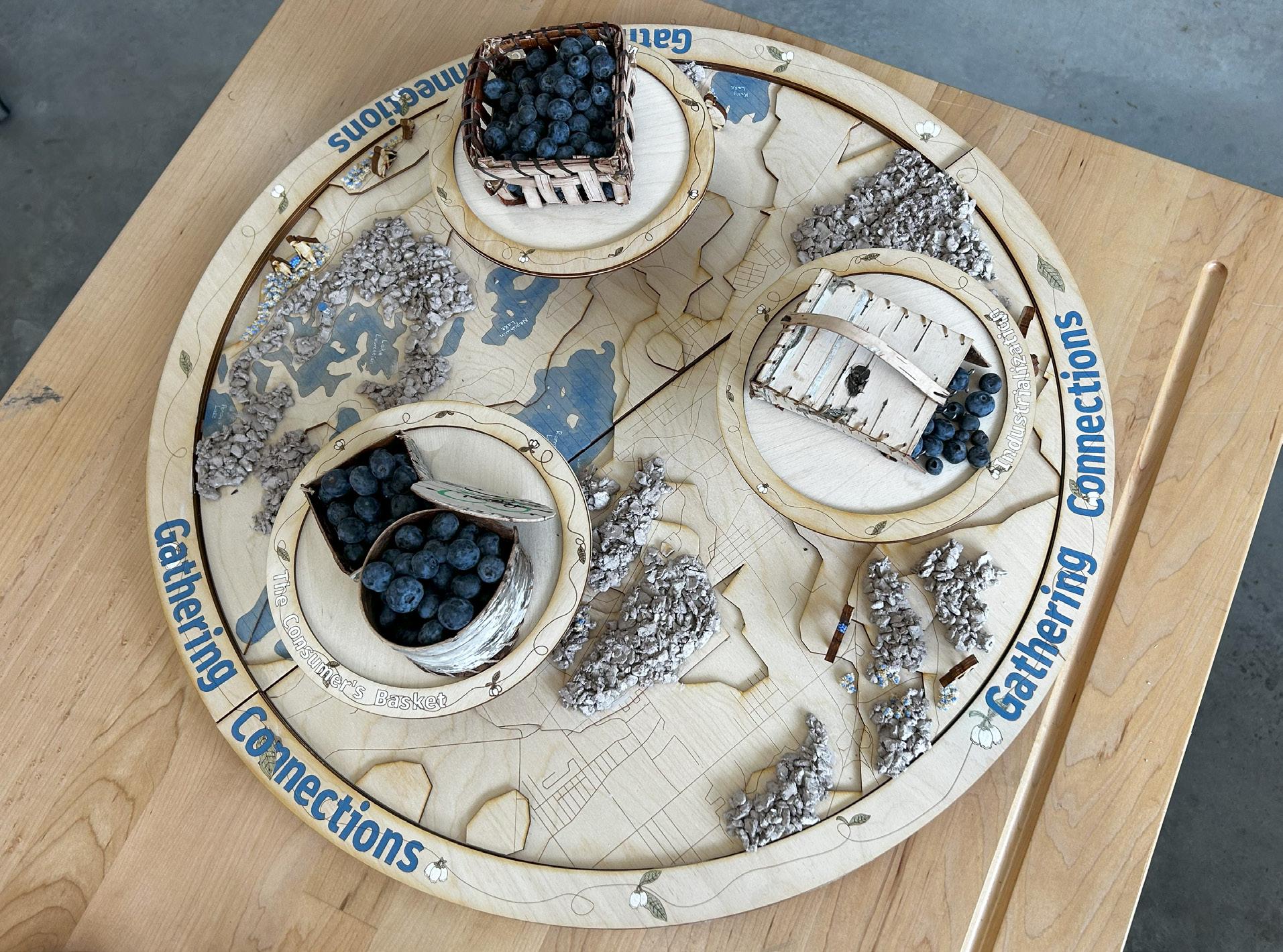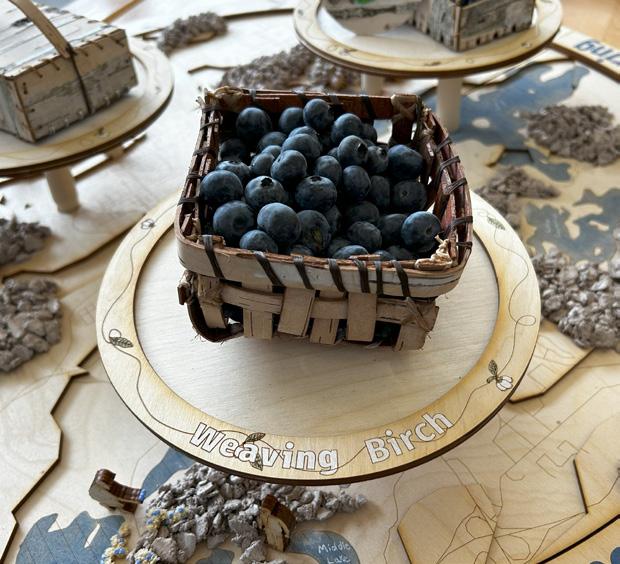 In Gathering Connections I explored Sudbury, Ontario’s connection to blueberries, highlighting its status as a blueberry hot spot due to the resislient lowbush blueberry, which thirved during Sudbury’s regreening efforts after mining and logging devastated its landscape. The exhibit acknowledges the land’s history, the Atikameksheng Anishnawbek, and Wahnapitae First Nation territories. Blueberries hold historical and cultural significance, particularly for the Anishinaabe, who celebrate Miinke Giizis (Berry Moon) with blueberry and birch bark harvesting. These traditions foster connection and knowledge-sharing across generations.