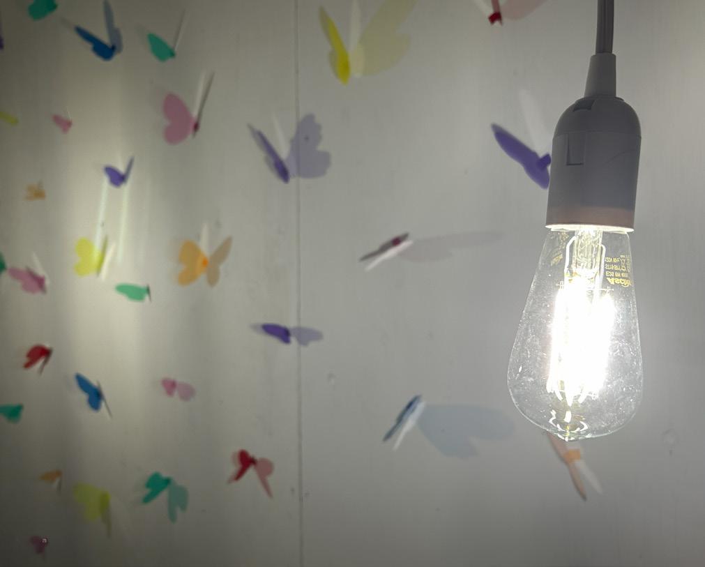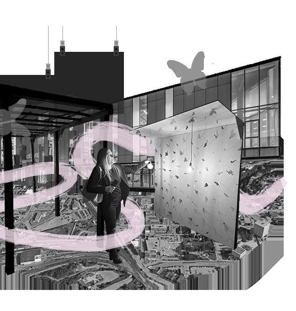 The Butterfly Room is a visual representation of the design process. The design process is similar to a butterflies lifecycle. The butterfly takes many shapes and forms but eventually turns into a beautiful butterfly, each unique. This reminds us of the design process we often learn in architecture school. Our designs can take many shapes and forms throughout the design process, but eventually we have beautifully unique buildings.
