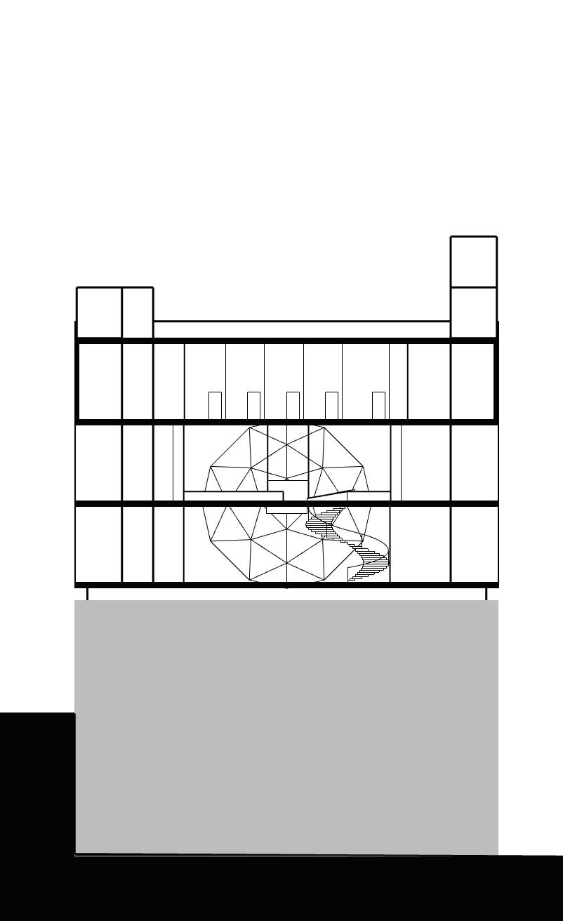 A PROPOSAL FOR A FILM STUDIO ADDITION ON TOP OF THE EXISTING JAPAN SOCIETY BUILDING IN TURTLE BAY, MANHATTAN. THE EXISTING BUILDING IS A PLACE TO CELEBRATE JAPANESE CULTURE AND INNOVATION IN NYC AND THE ADDITION IS TO BE A CONTINUATION OF THAT CONCEPT. THE PLANETARIUM IS BOTH THE CENTRAL FEATURE FORMALLY AND CONCEPTUALLY. TAKING GUIDANCE FROM JAPANESE ROBOTIST, MASAHIRO MORI’S TERM “UNCANNY VALLEY,” THE PLANETARIUM IS MEANT TO REFLECT JAPAN’S FAMILIARITY WITH THE UNFAMILIAR AND INHUMAN ASPECTS OF THE UNIVERSE.