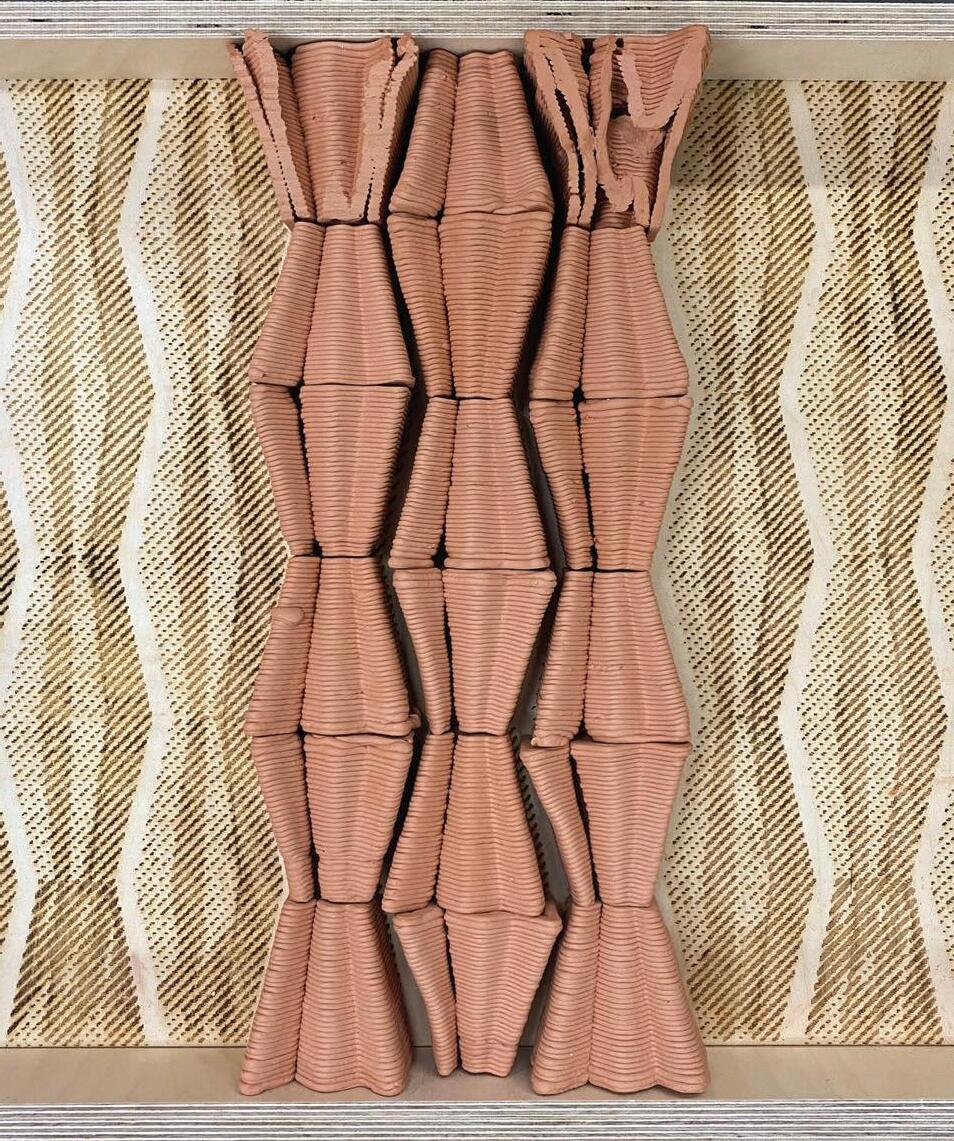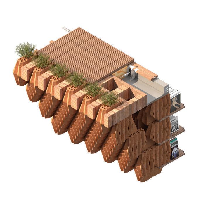 PART OF A COLLECTIVE STUDIO EFFORT, THE TOWER IS PART OF A LARGER PROPOSAL FOR THE NEW HAVERSTRAW BRICK MUSEUM IN EMELINE PARK. BEGINNING WITH A DEEPER INVESTIGATION OF THE BRICK UNIT. WE INVESTIGATED HOW POROUS BRICKS COULD MITIGATE THE ECOLOGICAL DISPLACEMENT CAUSED BY URBAN DEVELOPMENT. CHOOSING TO HOUSE LOCAL FLORA AND FAUNA THE BRICK WAS CREATED WITH THE INTENTION TO HOUSE BOTH THE LOCAL LONG EARED BAT AND WILD BLACKBERRIES. IN ADDITION, A LARGE PART OF OUR TIME WAS USED TO INVESTIGATE HOW ROBOTIC 3D PRINTING COULD BRING NEW POSSIBILITIES TO BRICK PRODUCTION AND DESIGN. THE LATTER HALF OF THE STUDIO UTILIZED OUR NEW BRICK MODELS TO DESIGN BUILDINGS TO HOUSE DIFFERENT PROGRAMS OF THE MUSEUM WHILE STILL PLAYING HOST TO LOCAL FLORA AND FAUNA. THE TOWER HOUSES THE ARCHIVES AND LIBRARY OF THE BRICK MUSEUM. THIS STUDIO’S WORK IS CURRENTLY EXHIBITED IN THE EXISTING HISTORICAL HAVERSTRAW BRICK MUSEUM.