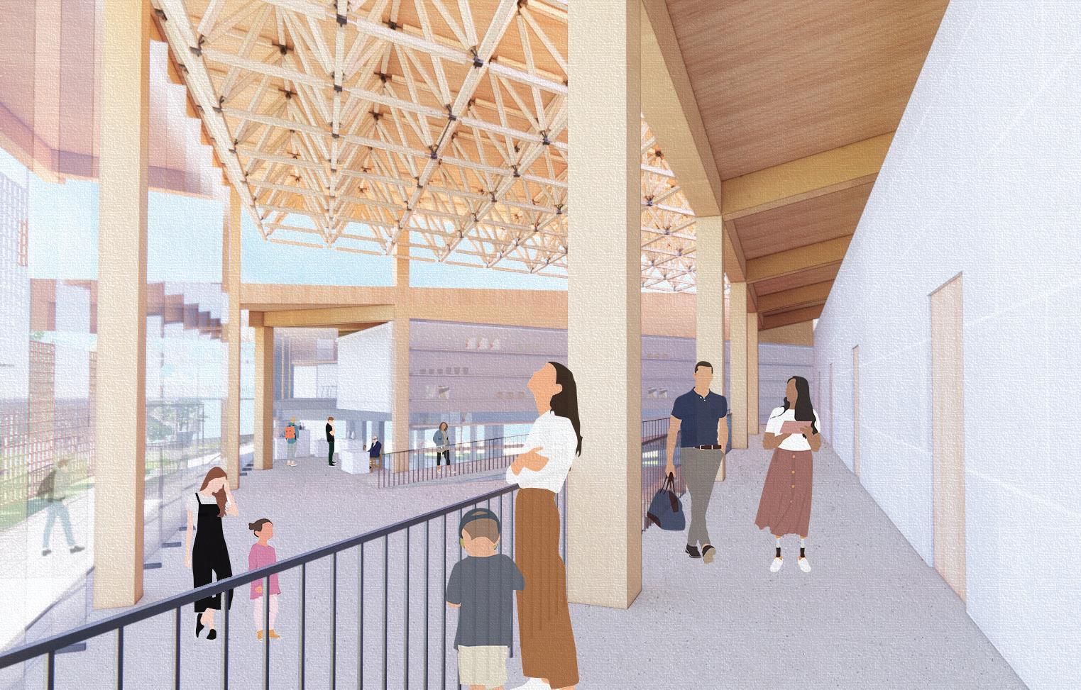 A COLLABORATIVE PROJECT, THIS PROPOSAL IS FOR A COMMUNITY CENTER BETWEEN THE NEIGHBORHOODS OF EDGEMERE AND ARVERNE IN THE ROCKAWAYS IN QUEENS. TO CONNECT THE TWO DIFFERENT COMMUNITIES, TWO PATHS CUT THROUGH THE SITE AND BUILDING. AN OUTDOOR MARKET SPACE IS ALLOTTED ON THE GROUND FLOOR SO THE REST OF THE PROGRAM CAN EXIST ABOVE THE DESIGNATED FLOOD ELEVATION. THE REMAINING PROGRAM SPACES ARE ORGANIZED BASED ON THEIR RELATIONSHIP TO THE CENTER OF THE SITE WHICH IS VOID IN SECTION. THE GOAL IS TO DRAW PEOPLE FROM DIFFERENT COMMUNITIES INTO ONE CENTER THAT THEY CAN ALL BE A PART OF.