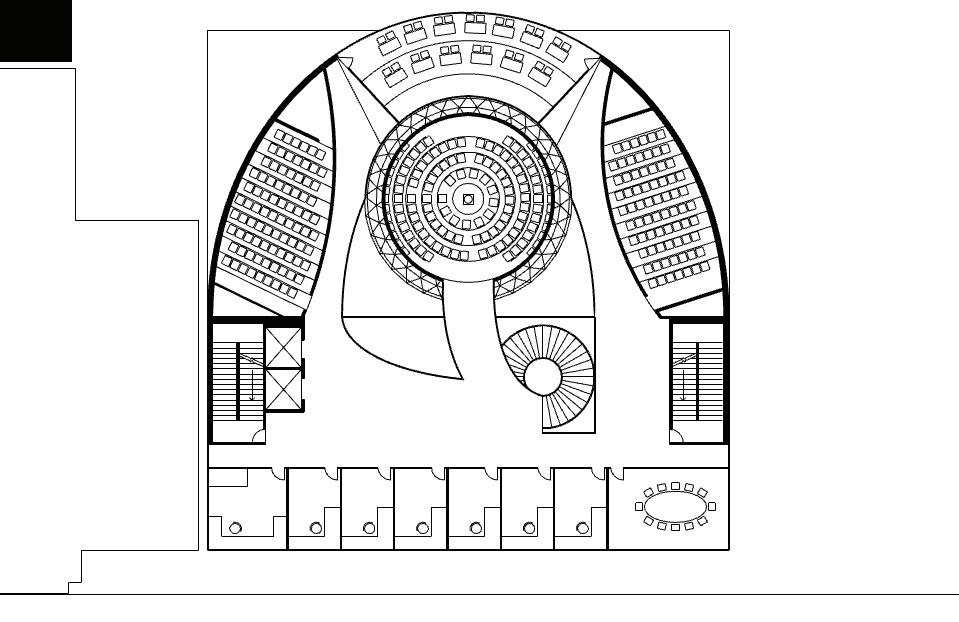LEFT TO RIGHT IMAGES: NORTH/SOUTH SECTION THROUGH PLANETARIUM