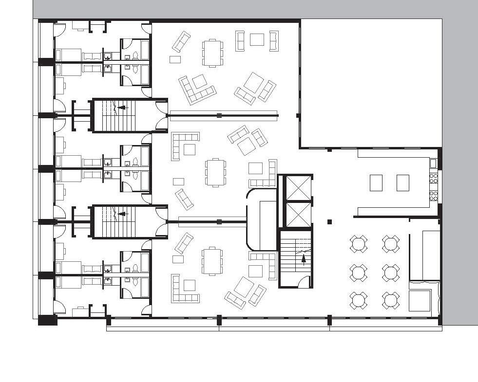 A PROPOSAL FOR DORM STYLE LIVING IN A NON-TRADITIONAL APARTMENT BUILDING IN VINEGAR HILL, BROOKLYN. WITH A FOCUS ON THE COMMUNAL SPACES OF LIVING, THE SINGLE OCCUPANT BEDROOMS ARE MUCH SMALLER. THE HOUSING SITUATION IS IDEAL FOR YOUNG SINGLE PROFESSIONALS WHO WANT TO CREATE A CLOSER COMMUNITY WITH THEIR NEIGHBORS IN A CITY THAT CAN FEEL ISOLATING. THE GRADIENT FROM PRIVATE TO MORE COMMUNAL SPACE ALLOWS OCCUPANTS TO CHOOSE HOW MUCH INTERACTION THEY WANT WITH THEIR NEIGHBORS AT ANY GIVEN TIME. THE STACKED UNITS BRING RESIDENTS FROM DIFFERRENT FLOORS TOGETHER TO INCREASE THE SIZE OF COMMUNITIES IN THE BUILDING.