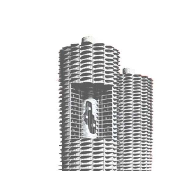 A centralized library and seating area creates both private and public spaces that can be enjoyed with the community or alone, while looking out onto the Chicago skyline.