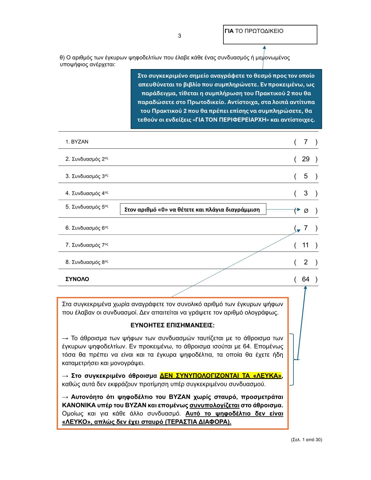 22 ΧΕΙΡΙΣΜΟΣ ΒΙΒΛΙΟΥ ΔΙΑΛΟΓΗΣ ΥΠΕΡ ΣΥΝΔΥΑΣΜΩΝ Η συμπλήρωση έχει γίνει βάσει των παραδειγμάτων των ψηφοδελτίων που εξετάσαμε προηγουμένως, ούτως ώστε να υπάρχει ταύτιση του εκλογικού σεναρίου που εξετάζουμε σε ολόκληρο τον βοηθό.