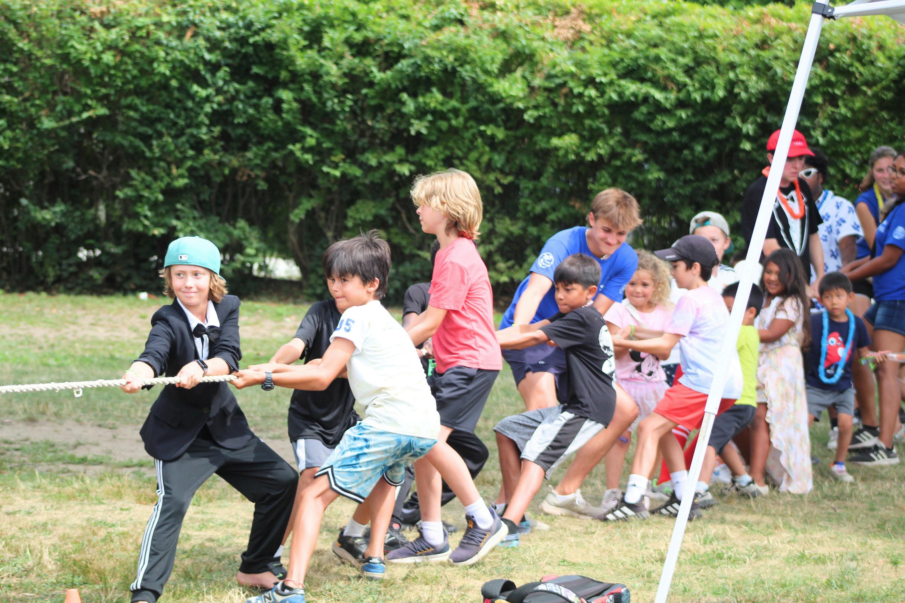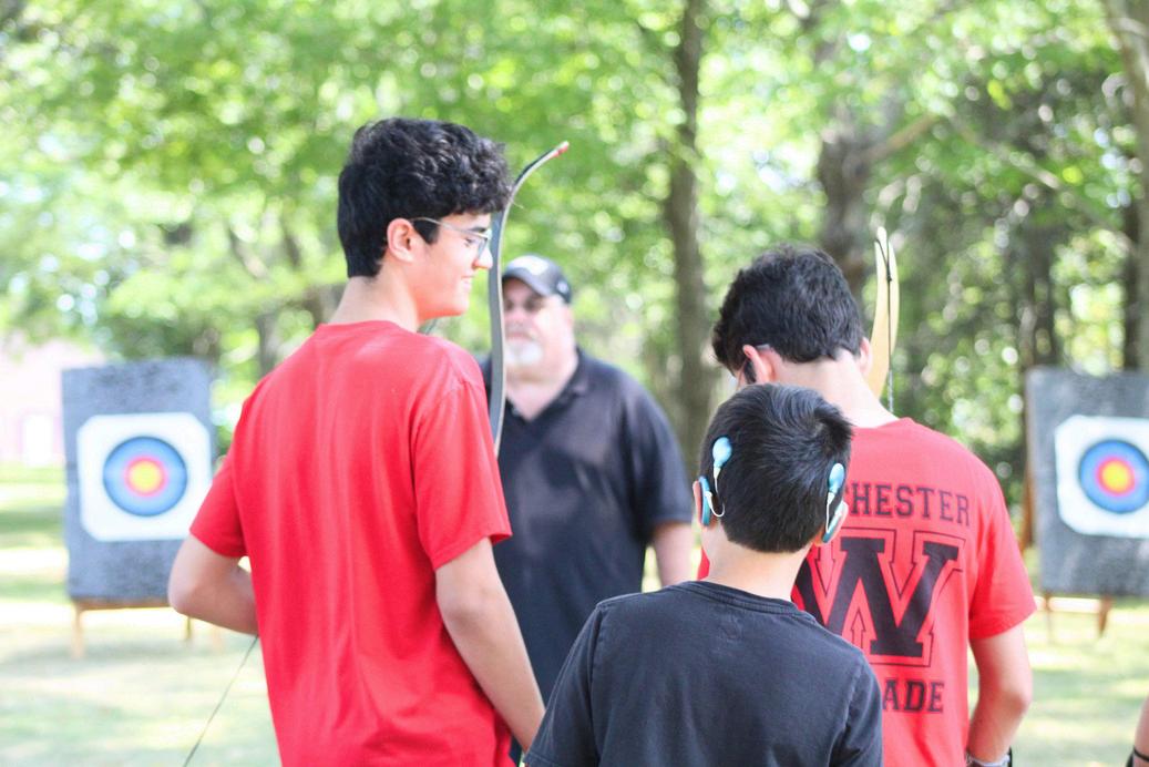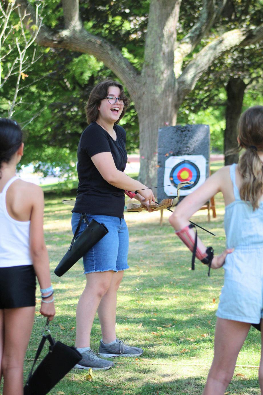 Andtug-of-wartorounditalloff!Undertheshade ofthetreesat theCommunity Center,archers aimtheirbows.Archery