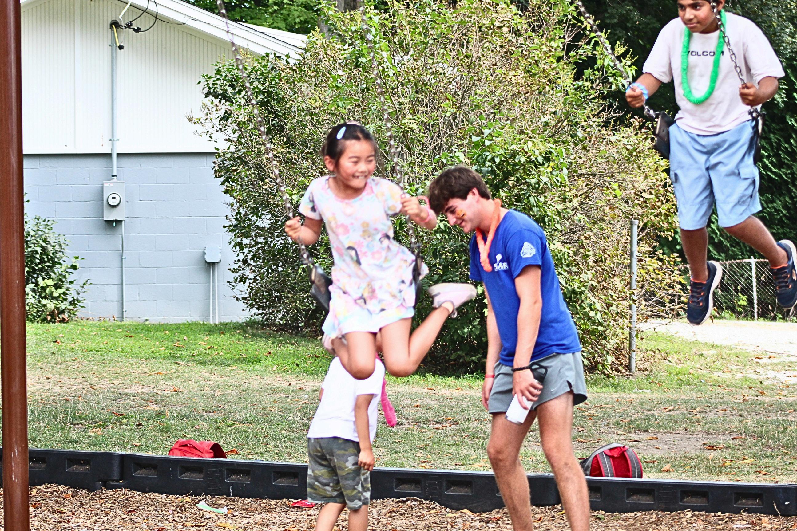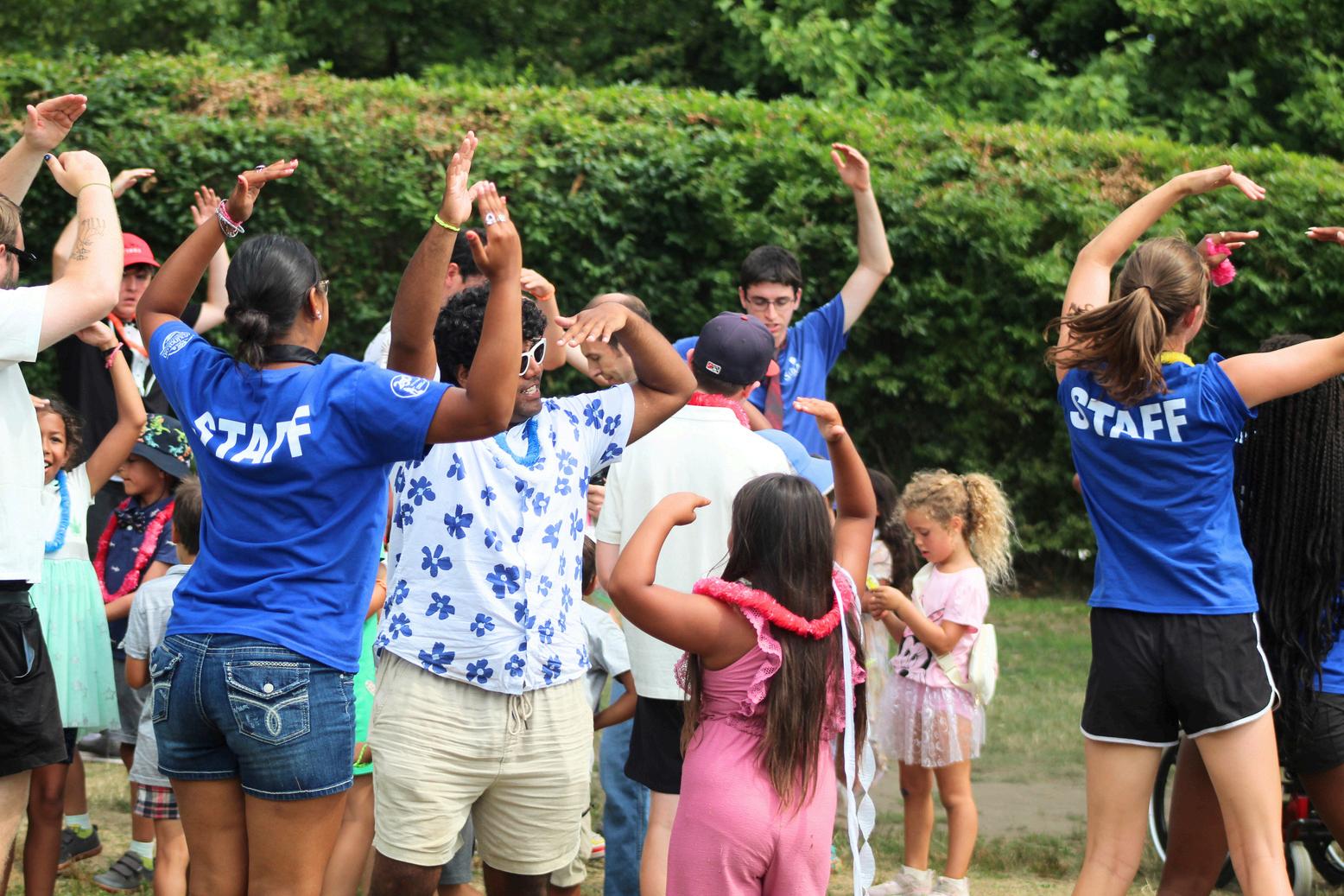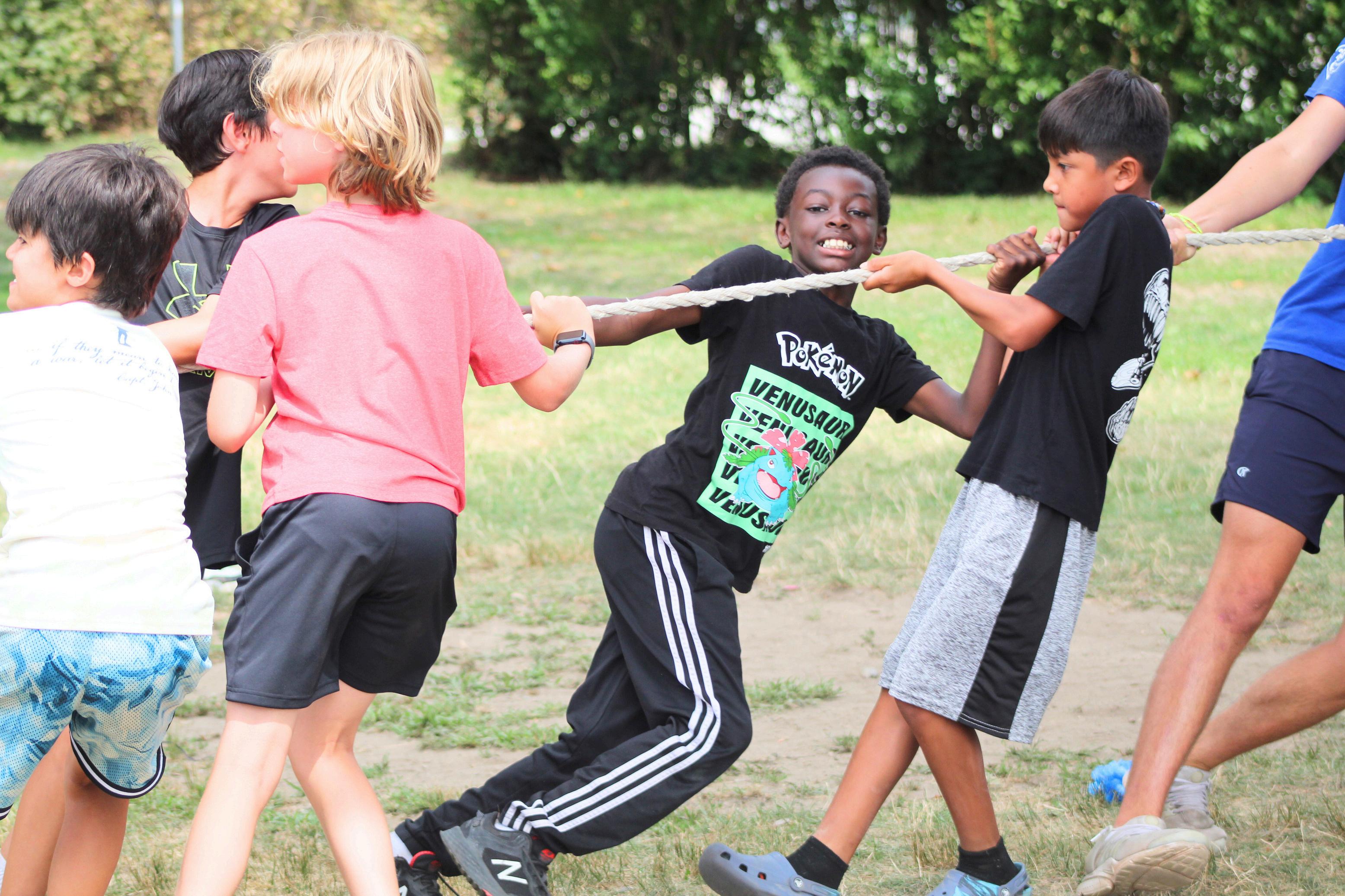 Andtug-of-wartorounditalloff!Undertheshade ofthetreesat theCommunity Center,archers aimtheirbows.Archery