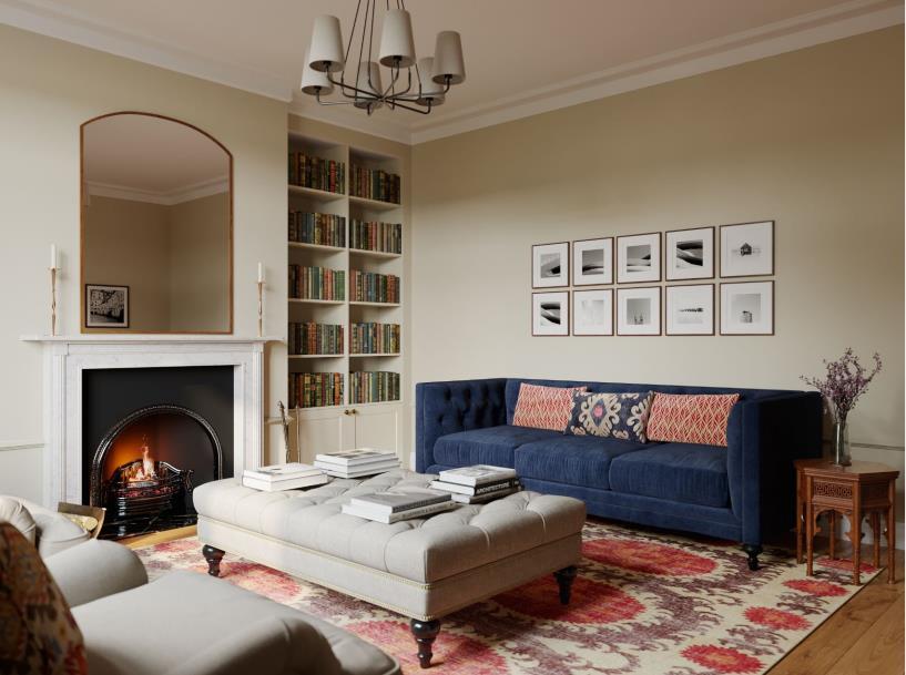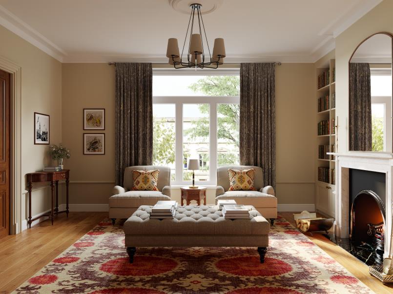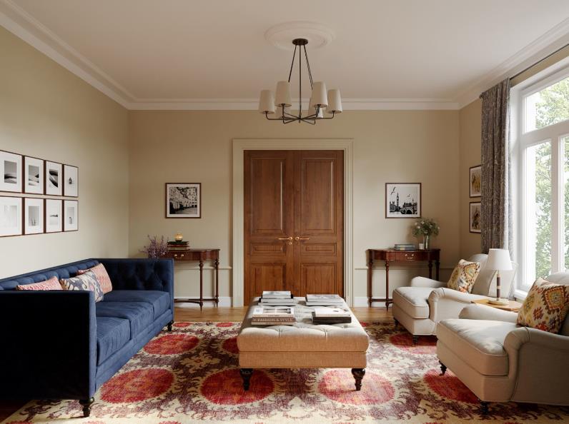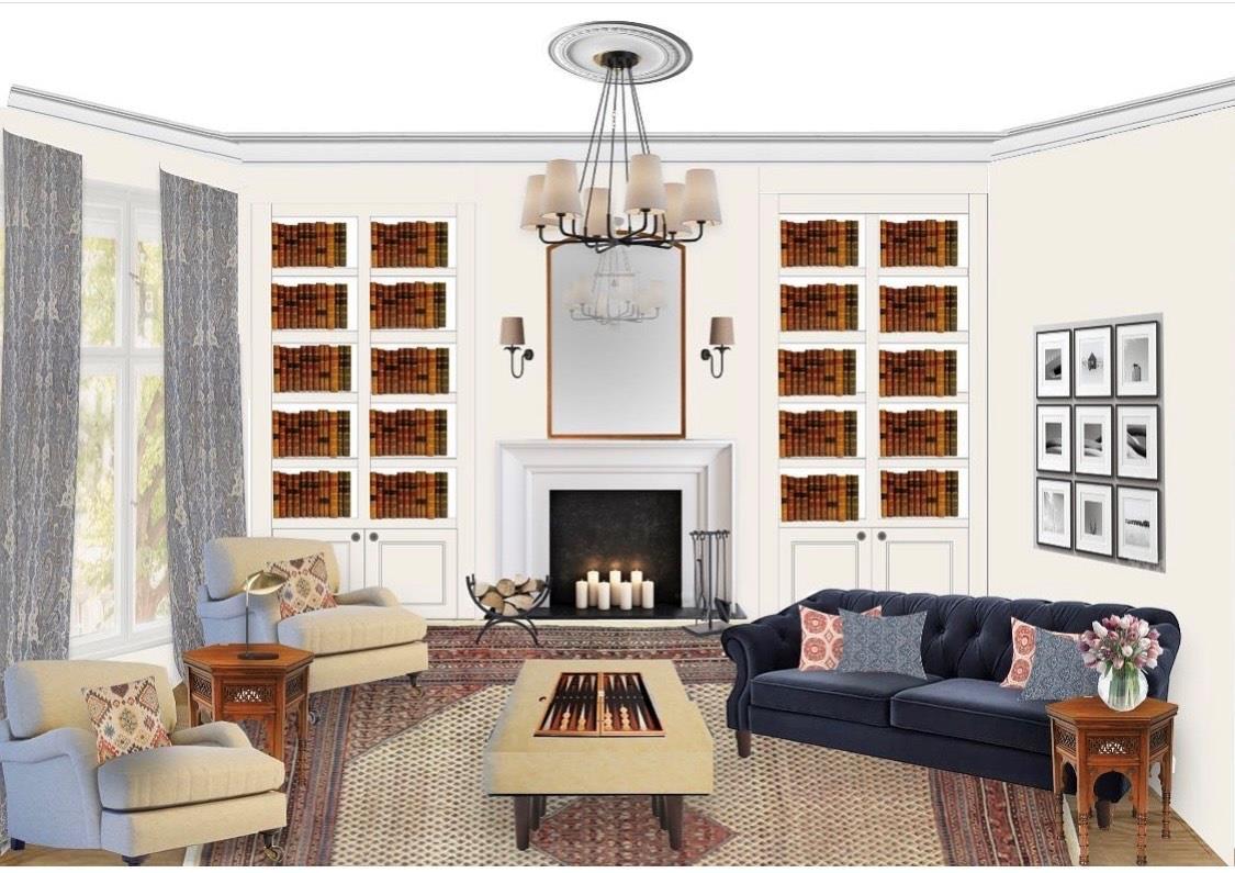 A family couple in their forties require a redesing of the living room. They like classic interiors with some oriental vibes, as they travelled a lot to Maghreb and love its cities and culture Their main requirement is to create a cozy space for relaxing in front of the fireplace after a working day.