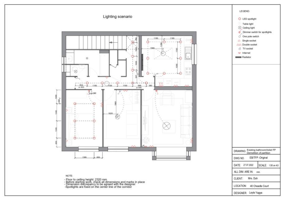 o I also changed the lighting design: luxury ceiling light and black wall light (task)