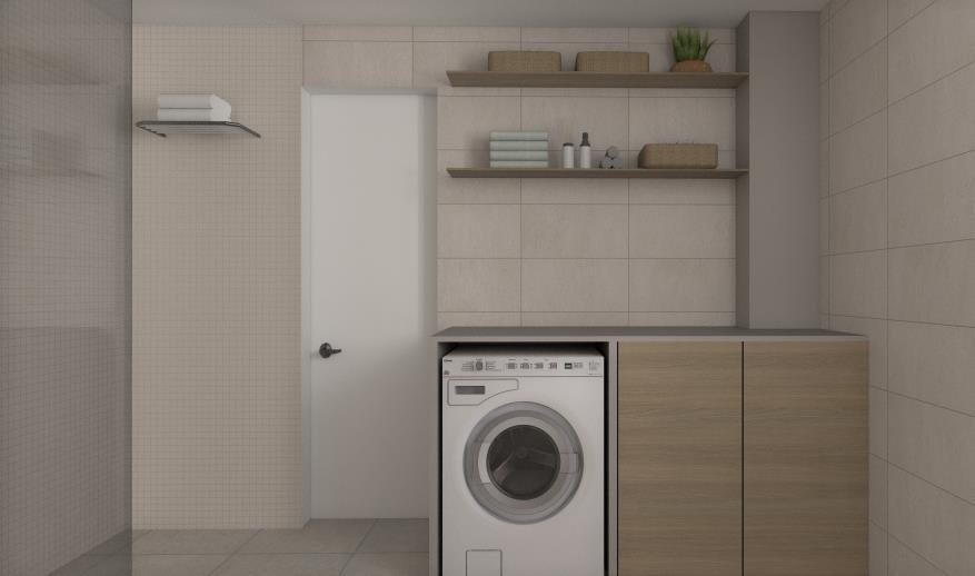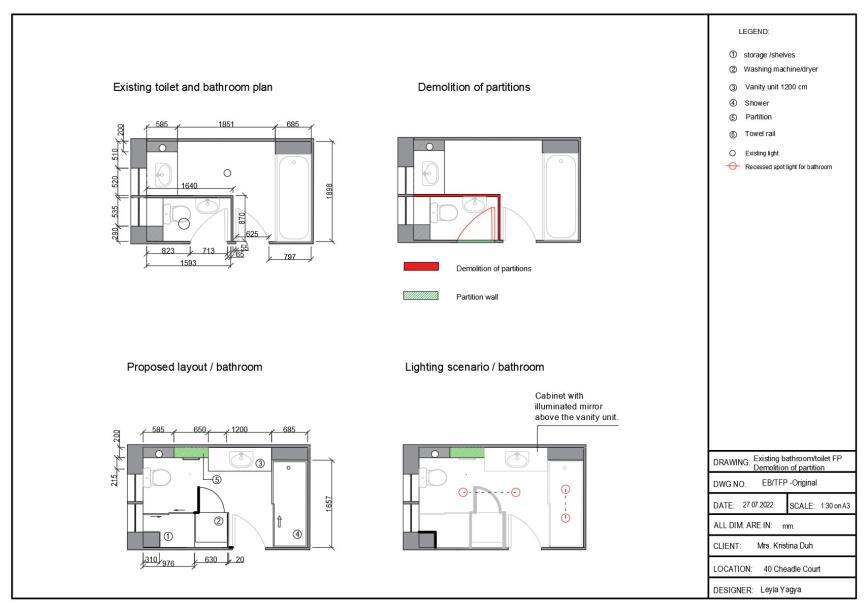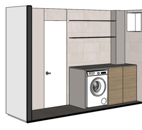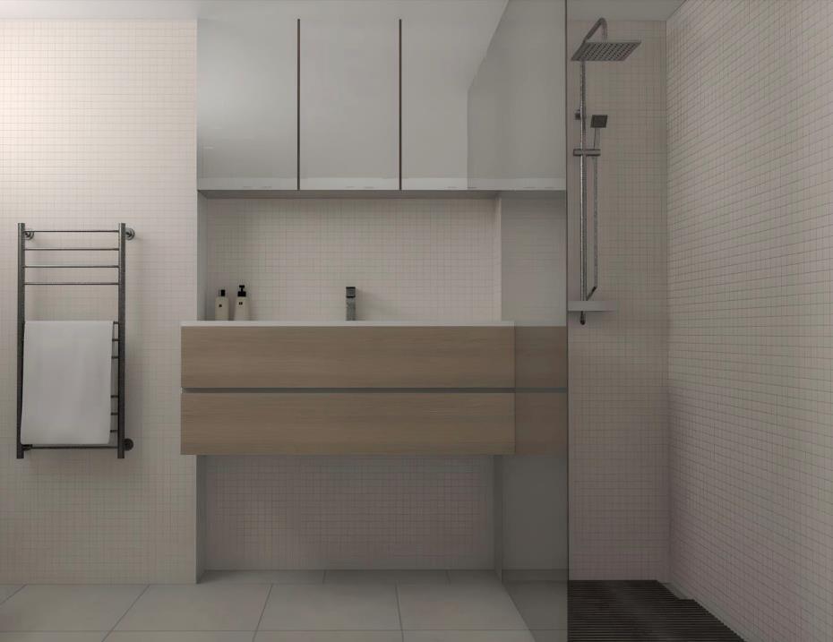 o When it comes to the bathroom design, the functionality is essential. Especially when we talk about small spaces. In my recent project the client asked me to redesign the existing bathroom and toilet and make it one space with some storage and a washing machine. I have prepared several options and we chose the best one, which nailed the requirements. The aesthetics is also important, so we offered clean lines, contemporary style with wood-effect vanity unit and beautiful tiles from CP Hart.