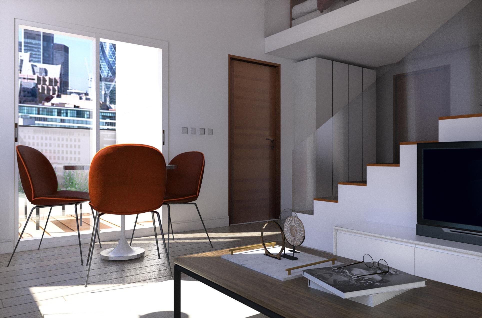 This studio-apartment was created for a young woman, professional, who bough her first property in a new development in Fulham