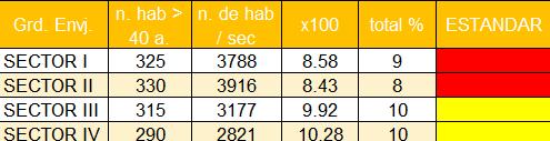 Aplicando los estándares de los 4 sectores, se puede observar que el S3 Y S4 son deficientes porque uno sobrepasa los estándares óptimos y al otro le falta alcanzar el estandar eficiente, mientras que el S2, llega al estandar óptimoy el S1 llega al estandar eficiente.