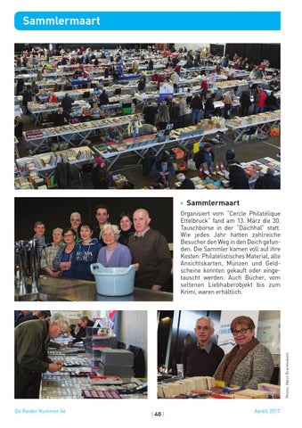 Organisiert vom “Cercle Philatélique Ettelbruck” fand am 13. März die 30. Tauschbörse in der “Däichhal” statt. Wie jedes Jahr hatten zahlreiche Besucher den Weg in den Deich gefunden. Die Sammler kamen voll auf ihre Kosten: Philatelistisches Material, alte Ansichtskarten, Münzen und Geldscheine konnten gekauft oder eingetauscht werden. Auch Bücher, vom seltenen Liebhaberobjekt bis zum Krimi, waren erhältlich.