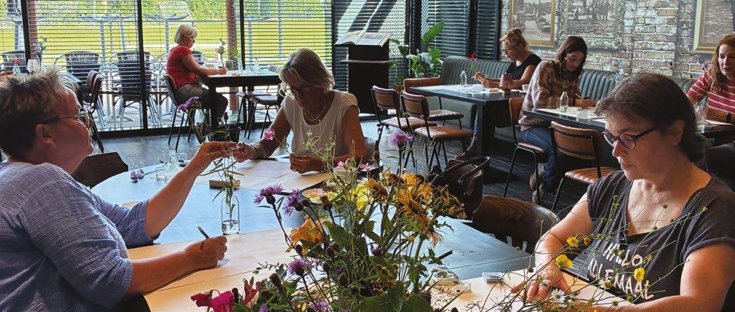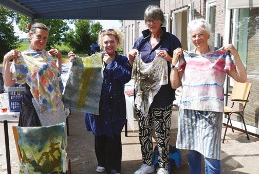 Op 16 augustus veranderde de schuur van Maatschap Wiersma in een levend atelier. Doet Boersma liet zien hoe verf, water en planten samenkomen in haar plasdras techniek. De deelnemers zagen hoe eenvoudige