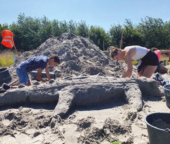De toekomstige locatie van het 65 meter lange landschapskunstwerk Dijk van een Wijf vormde voor één dag een speelveld van zand en verbeelding. Na een korte uitleg over technieken gingen de deelnemers zelf aan de slag. Hun handen vormden kastelen, zeedieren en mythische figuren, soms eenvoudig, soms verrassend gedetailleerd. Het werken met zand en water bracht speelsheid en samenwerking op gang: jong hielp oud, onbekenden gaven elkaar tips. Wat begon als een grote losse hoop zand groeide uit tot een bont geheel van tijdelijke sculpturen. De dag liet zien hoe een lege vlakte alvast gevuld kon raken met verhalen en ideeën.