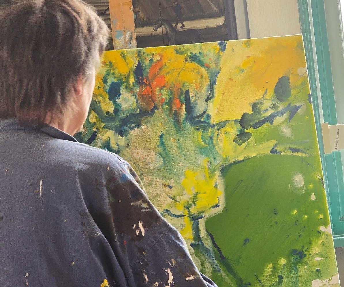 In het museum liet Doet Boersma zien hoe ze met haar plasdras-techniek schildert: natte verf vloeit samen tot levendige landschappen. Met afdrukken van planten in het schilderij komt de natuur langzaam tot leven. Ruim 20 bezoekers volgden het proces stap voor stap en stelden vragen over kunst en vruchtbare aarde.