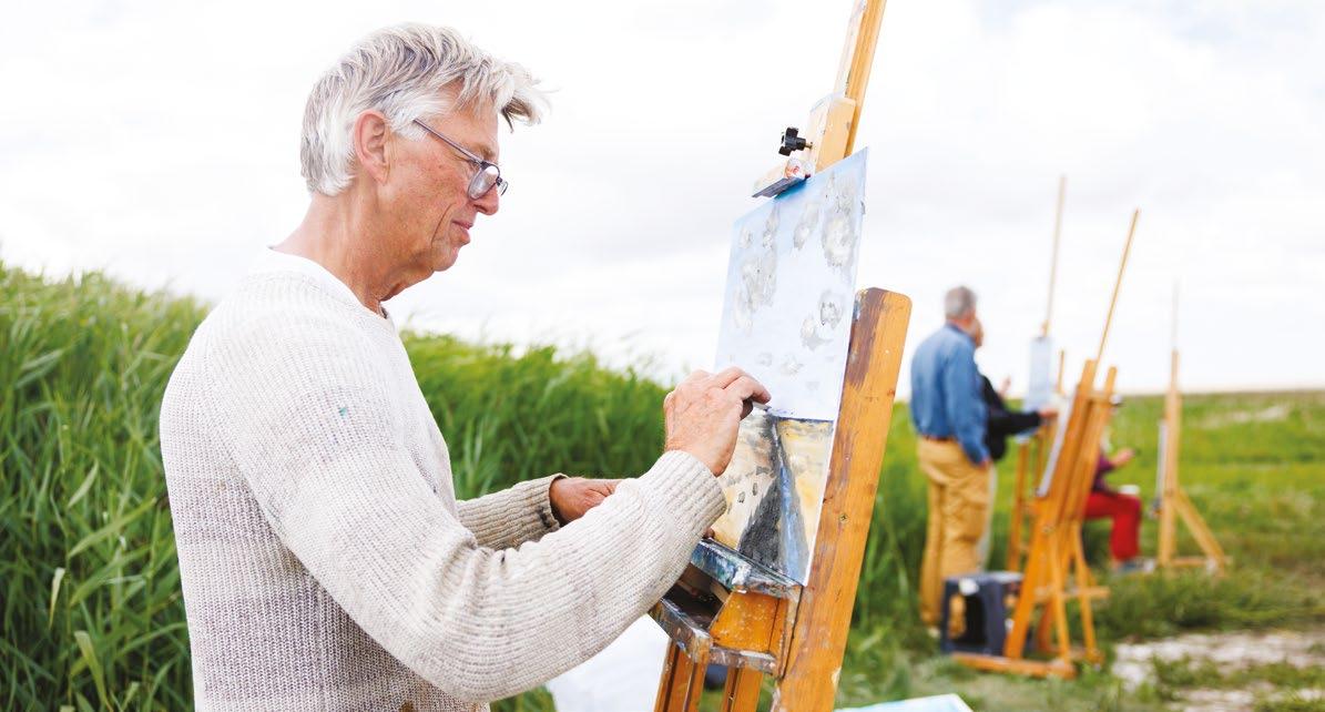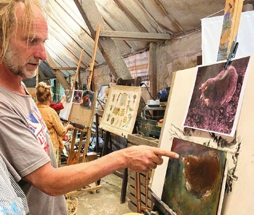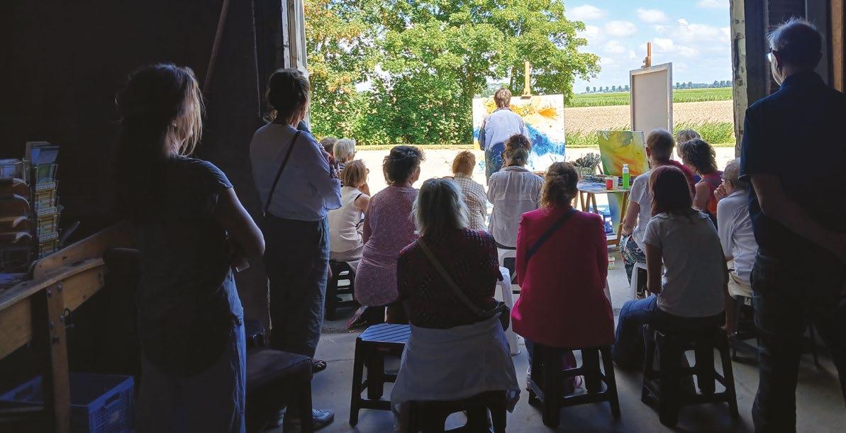 In de schuur van het akkerbedrijf gaf kunstenaar en local hero Hendrik Elings een dagworkshop bodemdieren schilderen. Na een korte demonstratie over zijn manier van werken, gingen de deelnemers zelf aan de slag. Hanen, mollen en andere dieren die dicht bij de grondleven verschenen kleurrijk op het doek. Tussendoor verzorgde gastvrouw Froukje de Jong een heerlijke boerenlunch. Iedereen ging naar huis met een eigen schilderij én een hoofd vol nieuwe schilderervaring.
