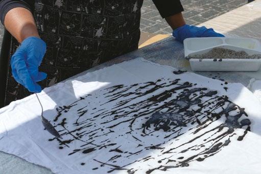 Tijdens de expositie Grûntoanen liet Joke zien hoe roest patronen vormt die bijna lijken op een geschreven taal van de bodem. In haar workshops Roestbundels út de grûn leerden deelnemers experimenteren met oude stoffen en roestige voorwerpen. Niet alleen het resultaat telde, maar vooral het verhaal dat mensen inbrachten. Een stuk gereedschap van een grootvader, een spijker van een oude schuur; elke afdruk werd een stukje geschiedenis op doek.