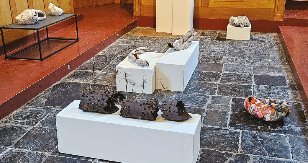 In de kerk van Boksum was de expositie Grûn yn klaai en ferve te zien. Liesbeth Daale liet zien hoe klei zich gedraagt als je het uitdaagt. Haar beelden scheuren, buigen en bewegen alsof de grond zelf leeft. Het werk Wortelen, geïnspireerd op ploegsporen, liet zien hoe kwetsbaar en sterk de bodem tegelijk is.